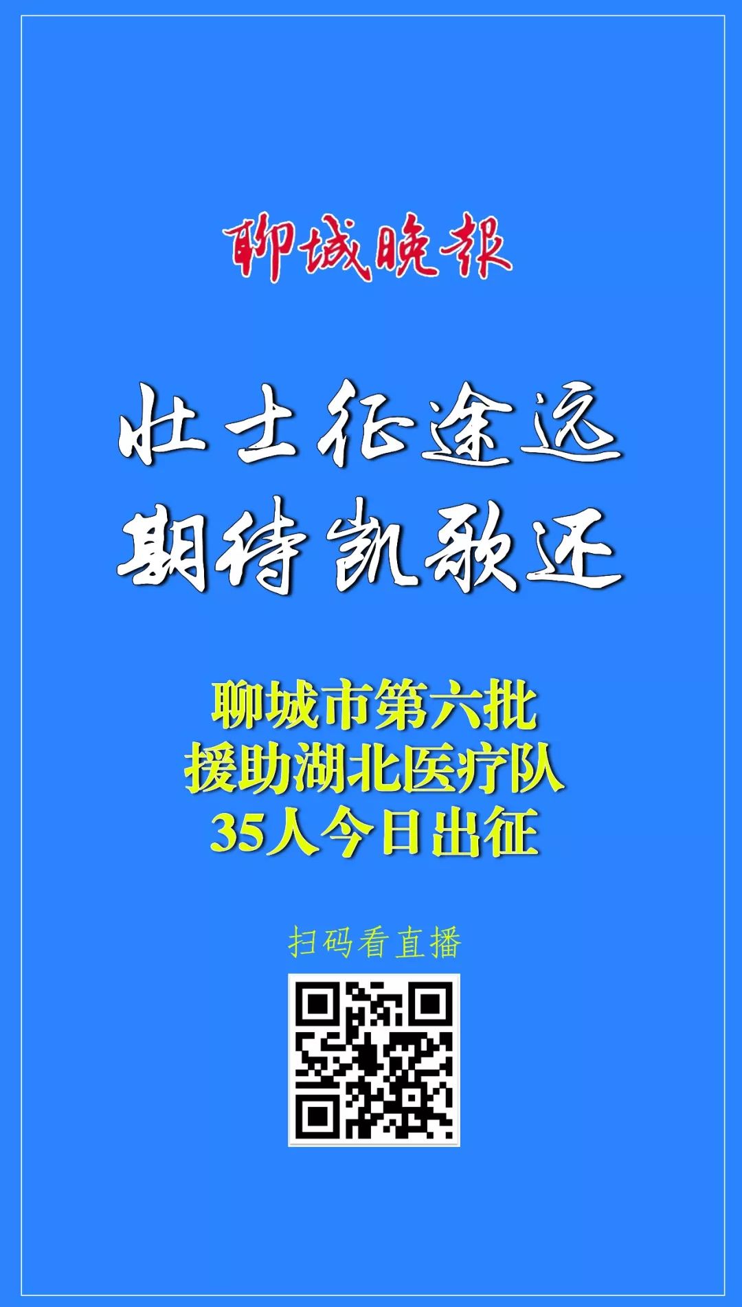 据了解,聊城第六批援助湖北医疗队共计35名成员,其中,聊城市人民医院6名,莘县人民医院4名,临清市人民医院3名,聊城市第二人民医院、聊城市第三人民医院、聊城市退役军人医院、聊城市中医医院、聊城市光明医院、高唐县人民医院、茌平区人民医院、东阿县人民医院、阳谷县中医医院、冠县人民医院各2名,东昌府人民医院1名,聊城市东昌府区妇幼保健院1名。