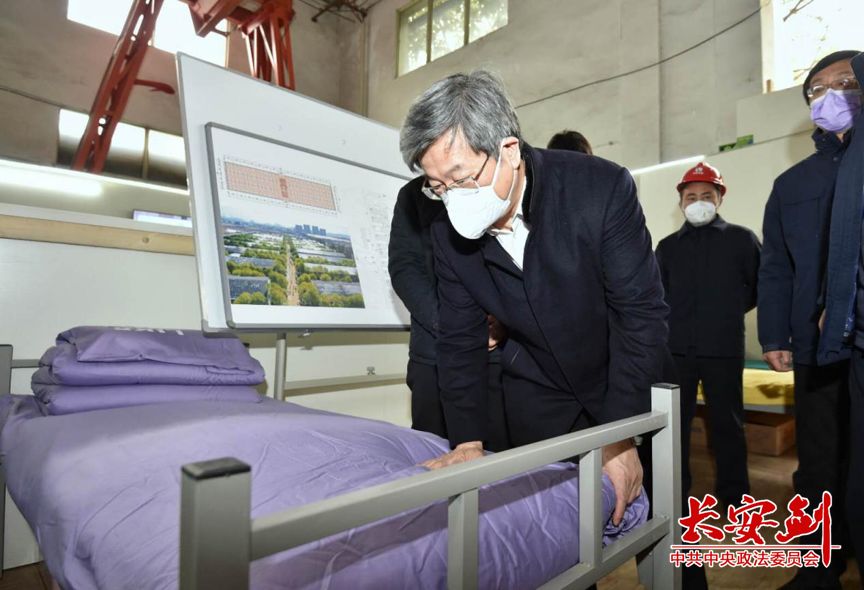 陈一新深入一线,在江岸方舱医院检查收治病人前的各项准备工作。