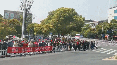 送行的志愿者高喊