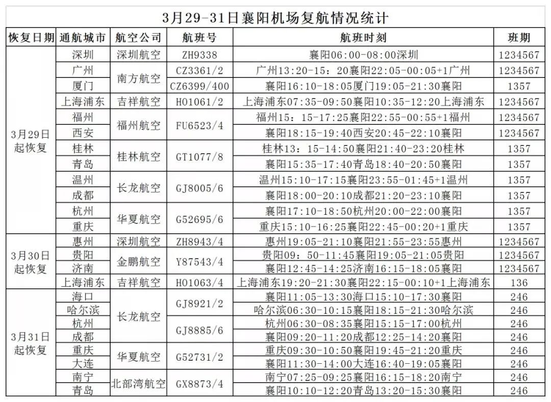 据了解,南方航空、深圳航空、长龙航空、吉祥航空、华夏航空、福州航空、桂林航空7家航空公司率先恢复襄阳航线。