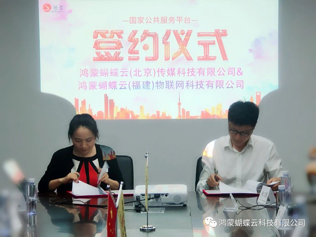 下午十四时三十分,鸿蒙蝴蝶云(北京)传媒科技有限公司与鸿蒙蝴蝶云(福建)物联网科技有限公司授牌签约仪式准时启动。