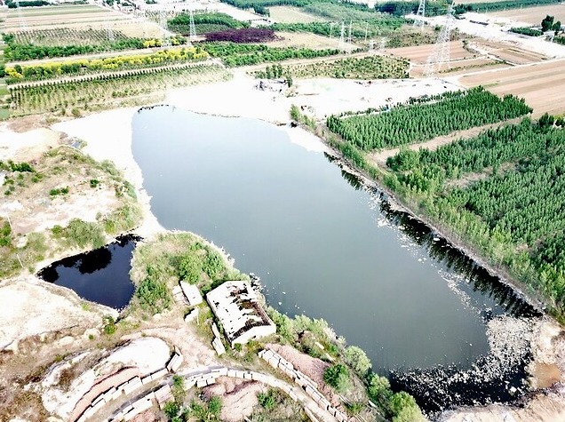 该污水坑位于房山区韩村河镇五侯村,面积约20000平方米、深约20米,水质较差,臭味明显。据介绍,这里曾有一家砖厂,持续多年的挖土烧砖形成了一个大坑。2015年,该砖厂关闭后,大坑因雨水汇集变成水坑。