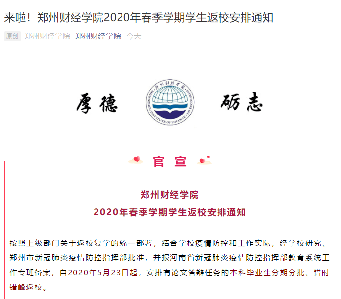 河南又有两所高校宣布返校复学时间!