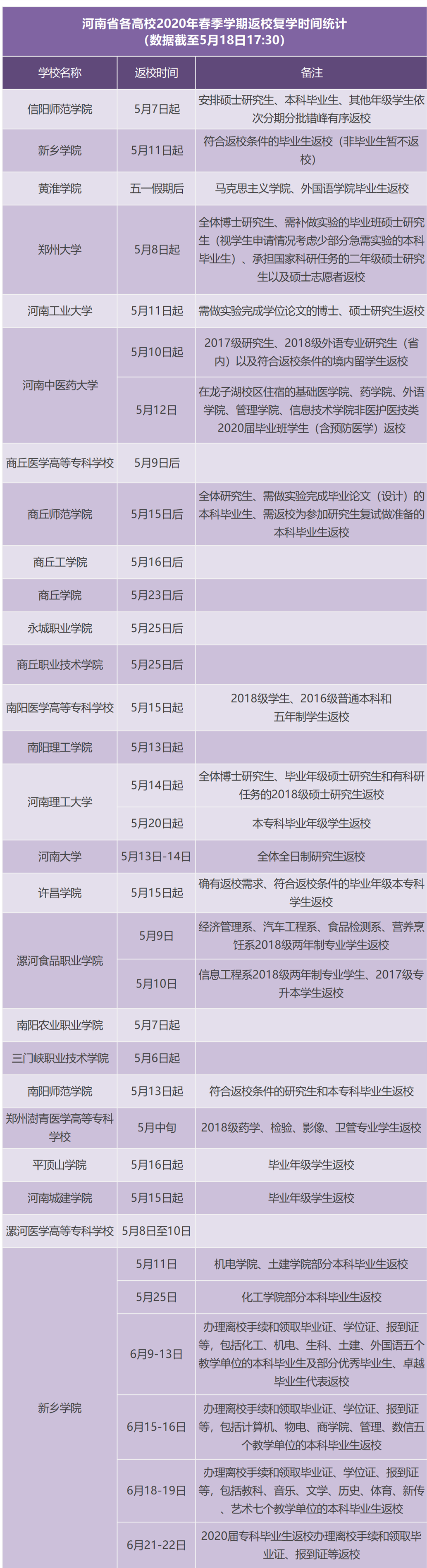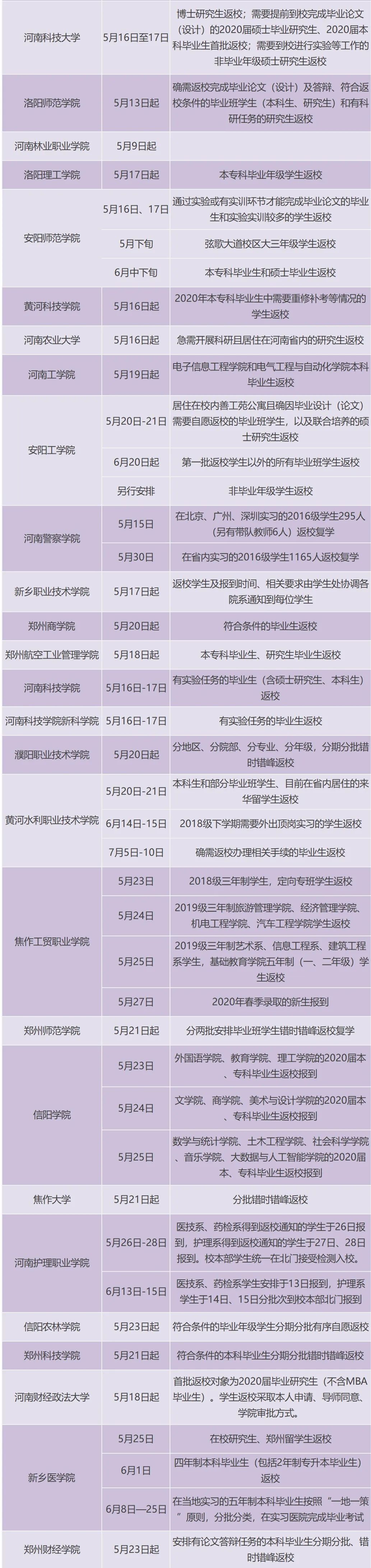 最新!河南又有6所高校发布复学通知!(附高校复学时间汇总表)
