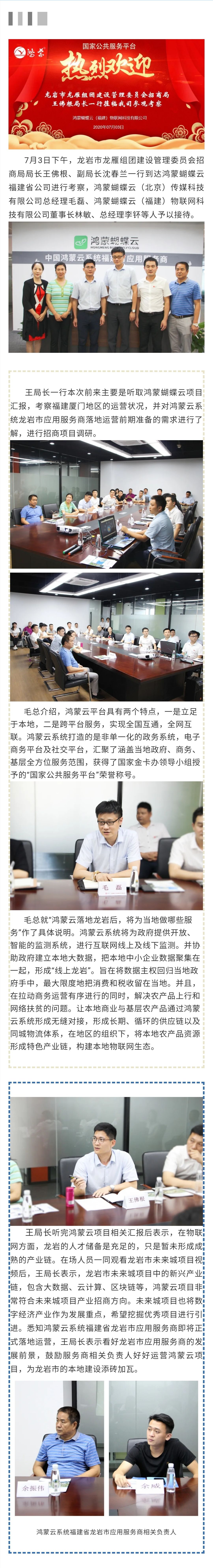龙岩市龙雁新区管委会招商局局长王佛根一行到访鸿蒙云系统福建省公司考察