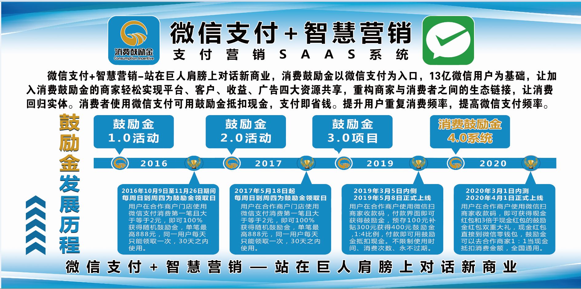 疫情无情人有情,但是,疫情严重的影响了实体经济的发展,为了活跃镇平区域经济,镇平县蝴蝶云科技公司与微信一级服务商易富风科技公司强强联手,利用微信支付4.0打造智慧营销体系,为实体商家赋能,通过实体商家让利,消费者省钱,再给予消费者一定比例的消费鼓励金红包(当现金使用),刺激消费市场,实现无感营销,促进实体经济从萧条走向繁荣,这个过程,消费者、商家、推广者均有获利,是国家发展之需,鼓励消费,拉动内需。