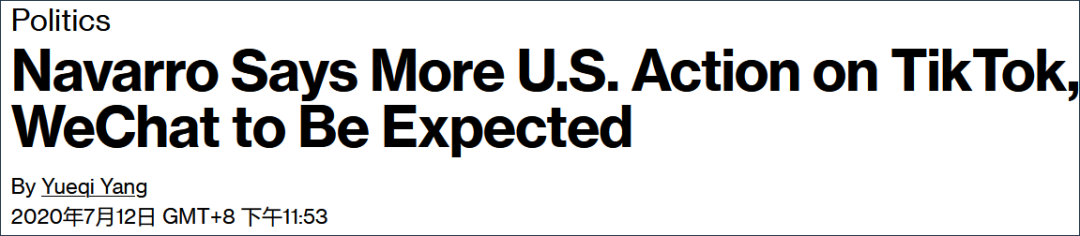 据彭博社报道,当地时间12日,在接受福克斯新闻采访时,纳瓦罗除了抹黑TikTok和微信对美国构成所谓“信息安全威胁”外,他还将特朗普描绘成“信息战”的受害者,并威胁称特朗普政府针对TikTok和微信的相关行动“才刚刚开始”,不排除封禁这两款应用的可能。