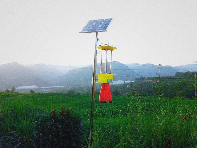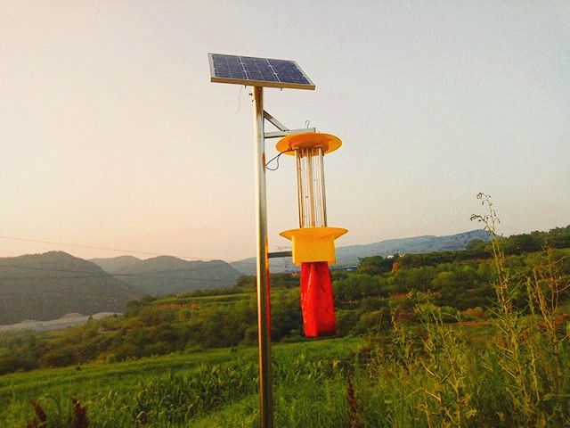 在胡底乡贾寨村的农田里,一个个带太阳能板的太阳能杀虫灯“守护”在田野,成为田园的一道靓丽风景。这种杀虫灯通过太阳能发电,晚上亮灯,诱捕害虫,通过物理防治,轻轻松松让农药减量,助推了当地的生态农业发展。