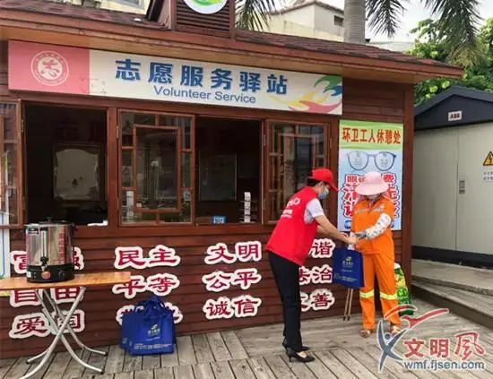 环卫工人前来志愿服务驿站休息(翔安区委文明办供图)