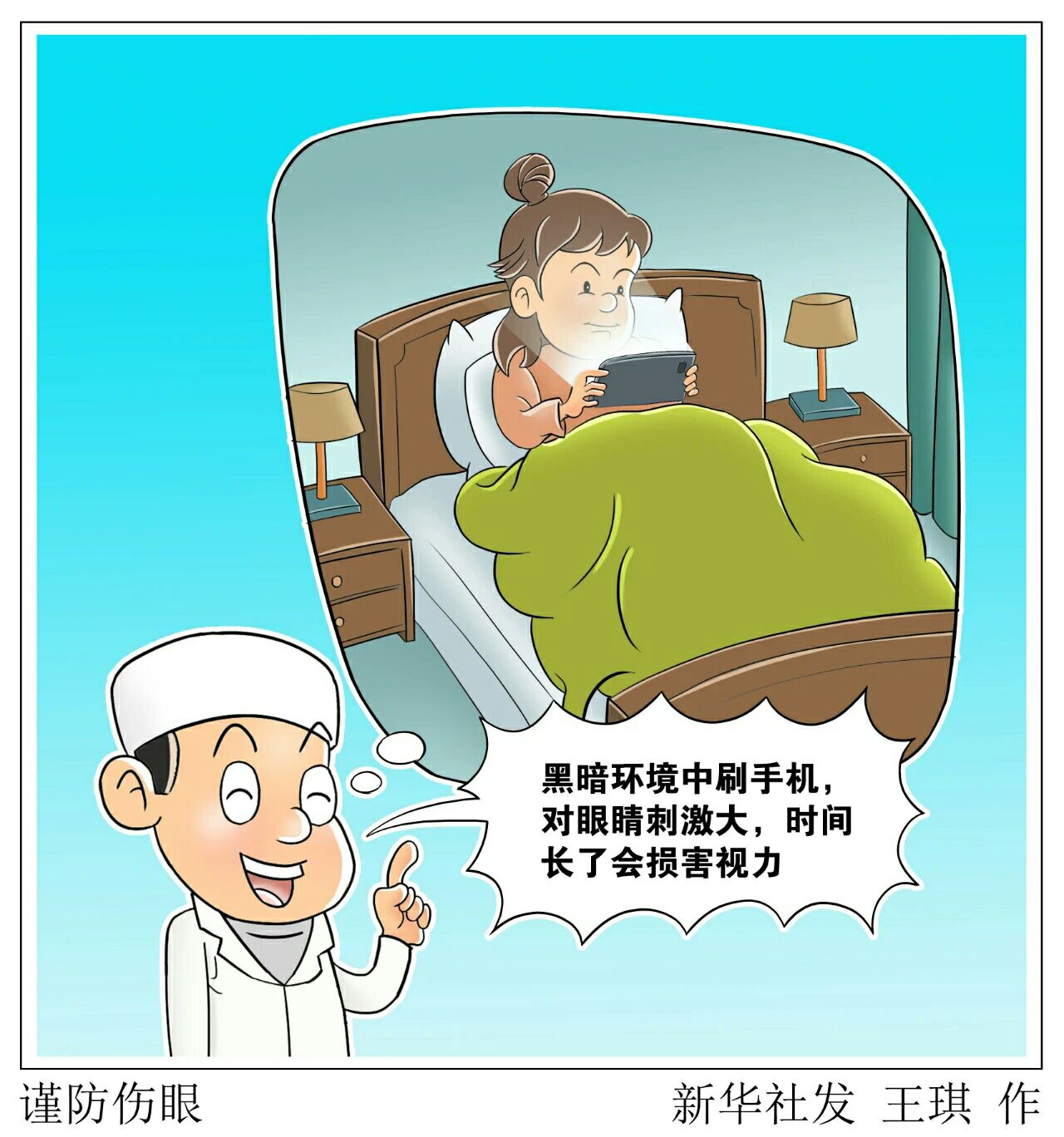 不少人晚上有关了灯躺在床上刷会儿手机再睡觉的习惯。专家提醒,黑暗环境中刷手机,屏幕亮而周围环境暗,光线对比度强,对眼睛刺激大,时间长了会损害视力。