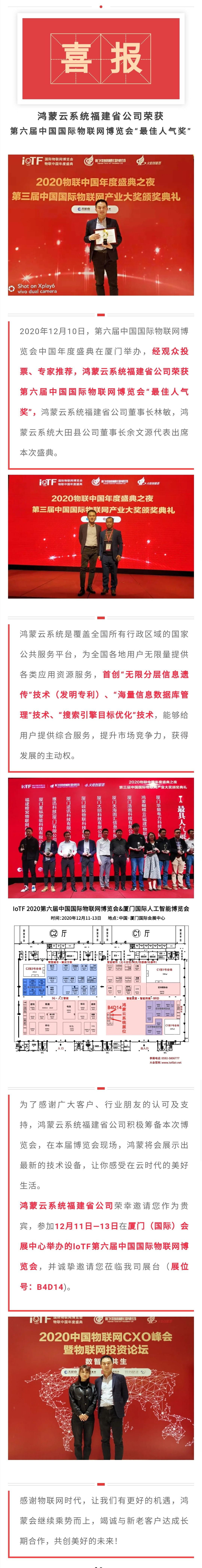 喜报|鸿蒙云系统福建省公司荣获第六届中国国际物联网博览会“最佳人气奖”