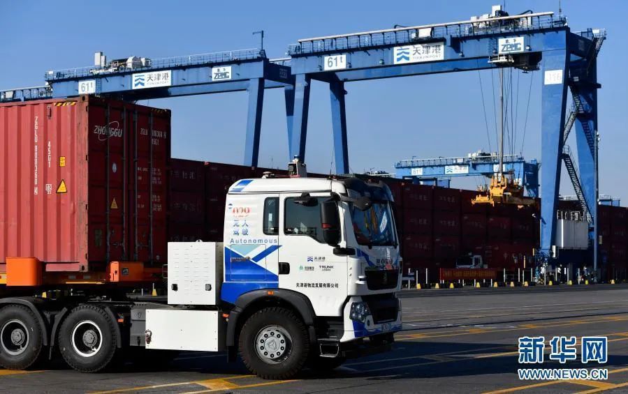 1月17日上午,天津港集装箱码头自动化驾驶示范区内,一排排无人驾驶电动集装箱卡车有序经过自动加解锁站,停靠到预定地点,自动化岸桥再从集卡上抓取集装箱,稳稳落在货轮上。这一系列操作的完成,标志着天津港运用北斗技术实现了集装箱码头自动化作业。