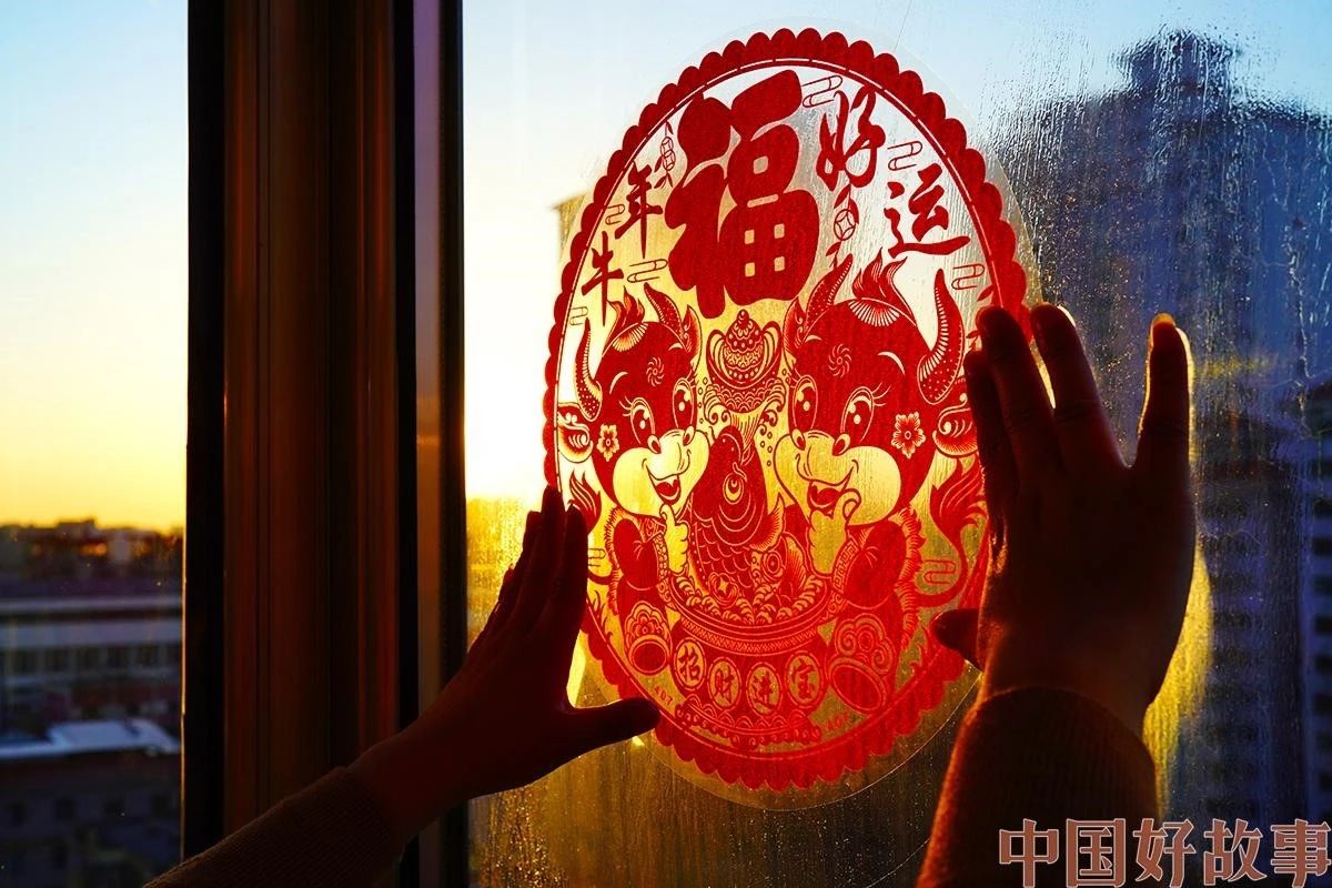 2021年2月2日清晨,市民在家中贴牛年窗花。宋家儒摄
