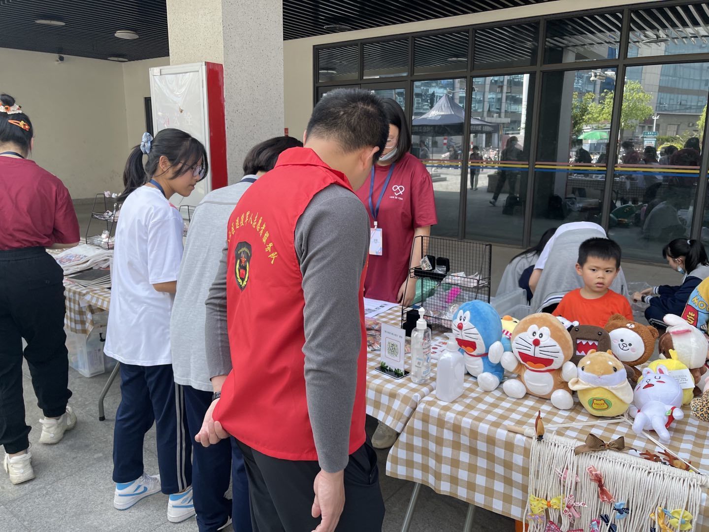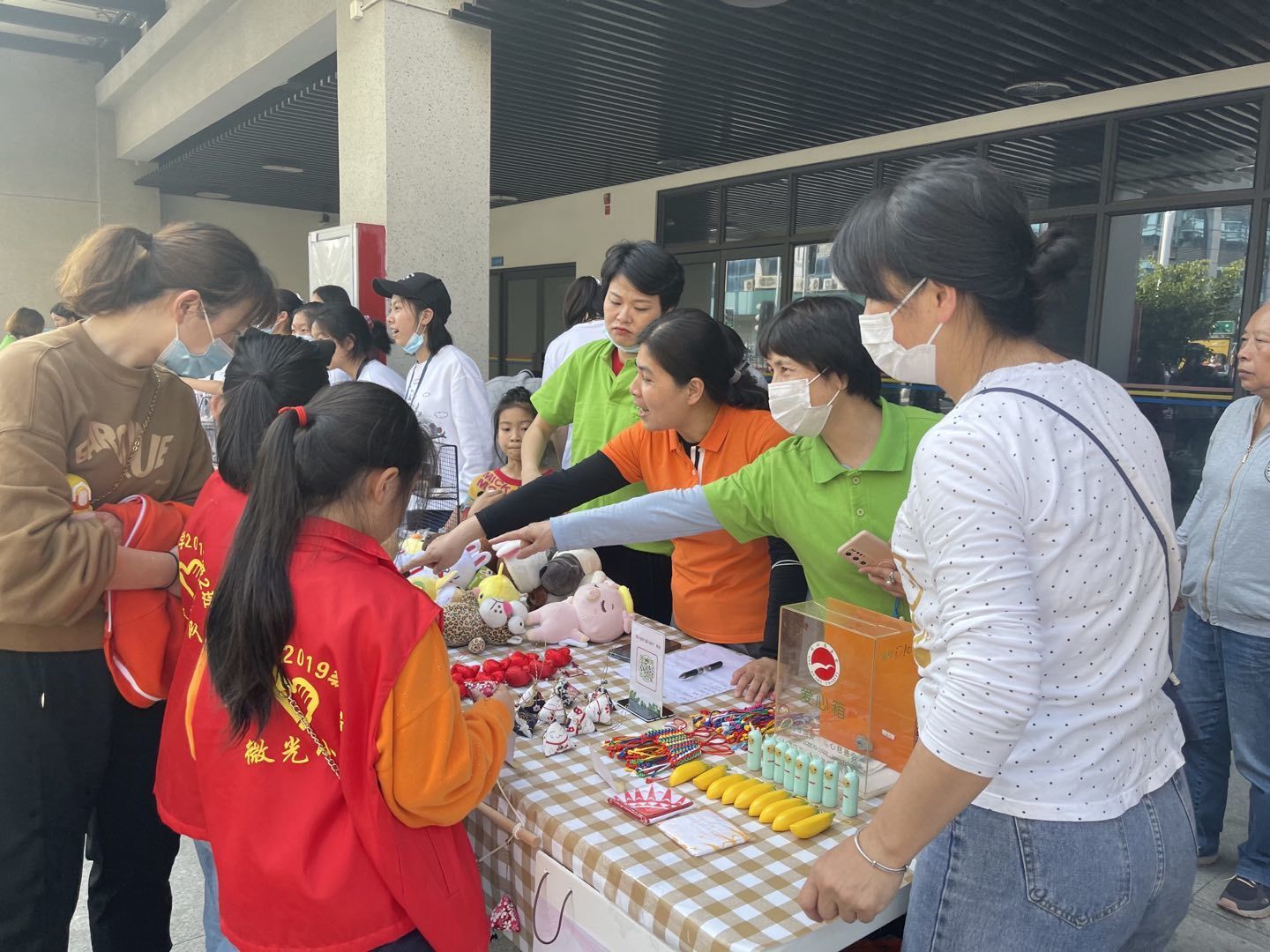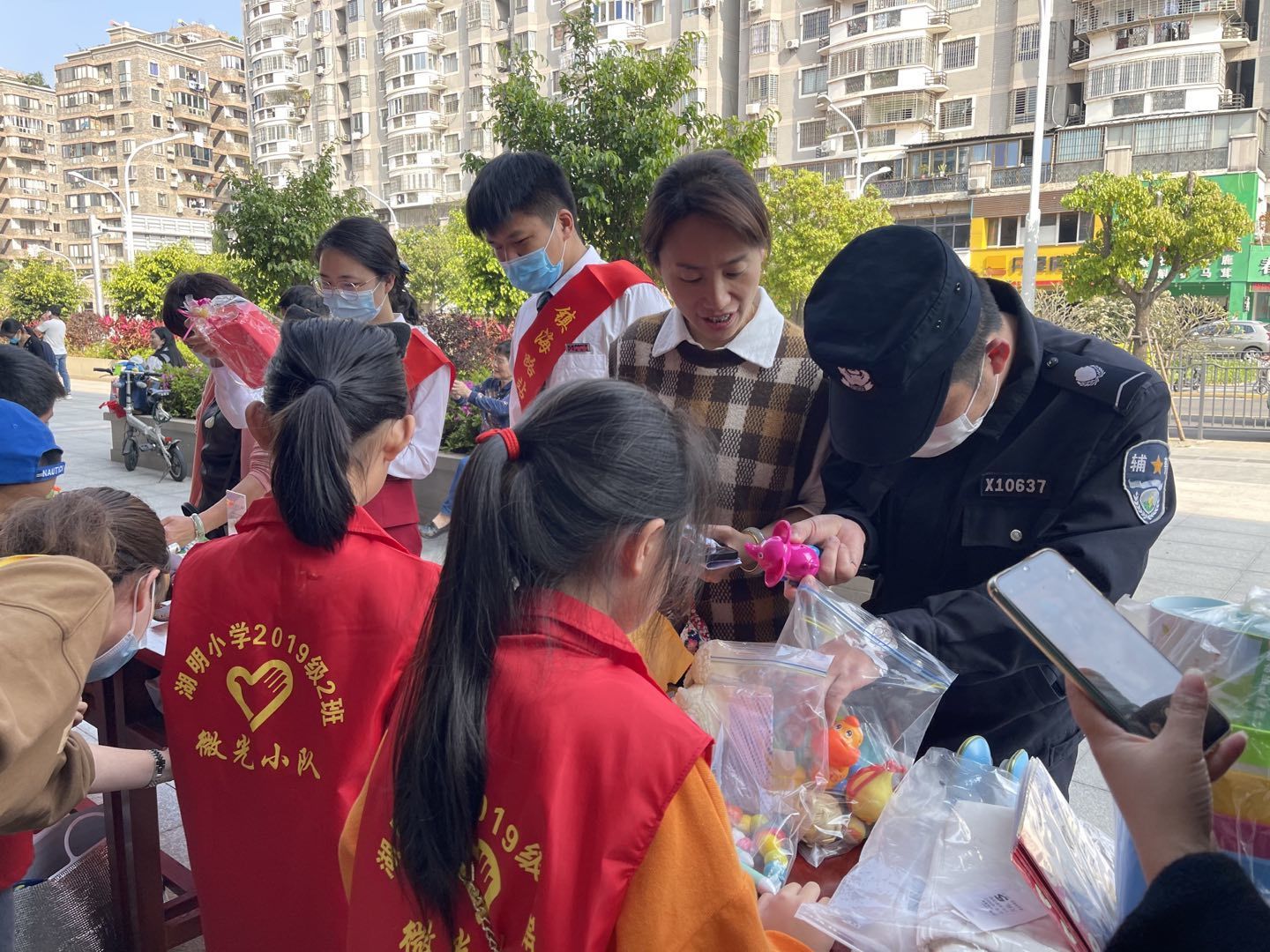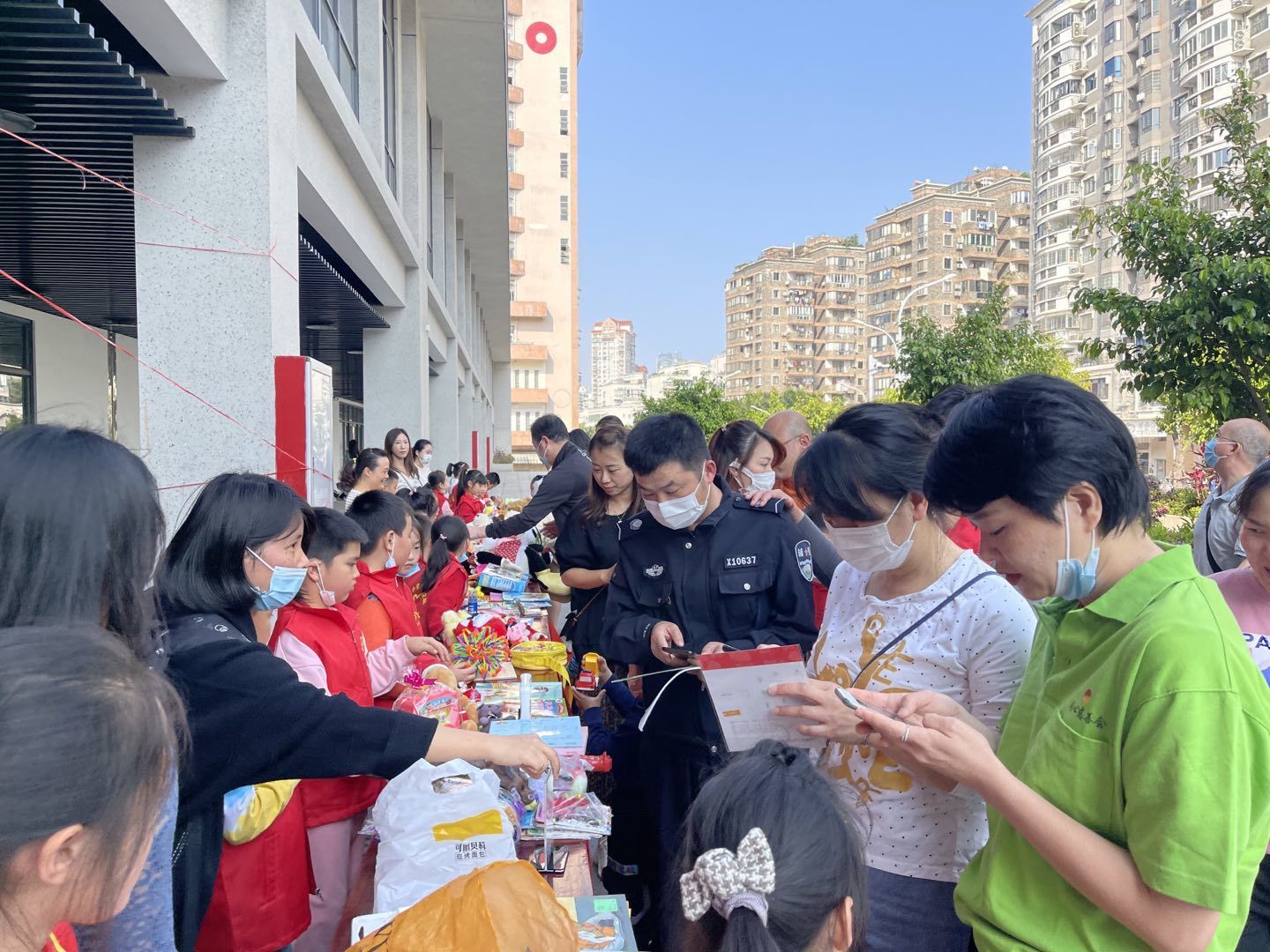 活动当中,现场居民、社区工作者、志愿者、派出所等都参与义卖活动当中,挑选出自己喜欢的的物品,为公益助力。