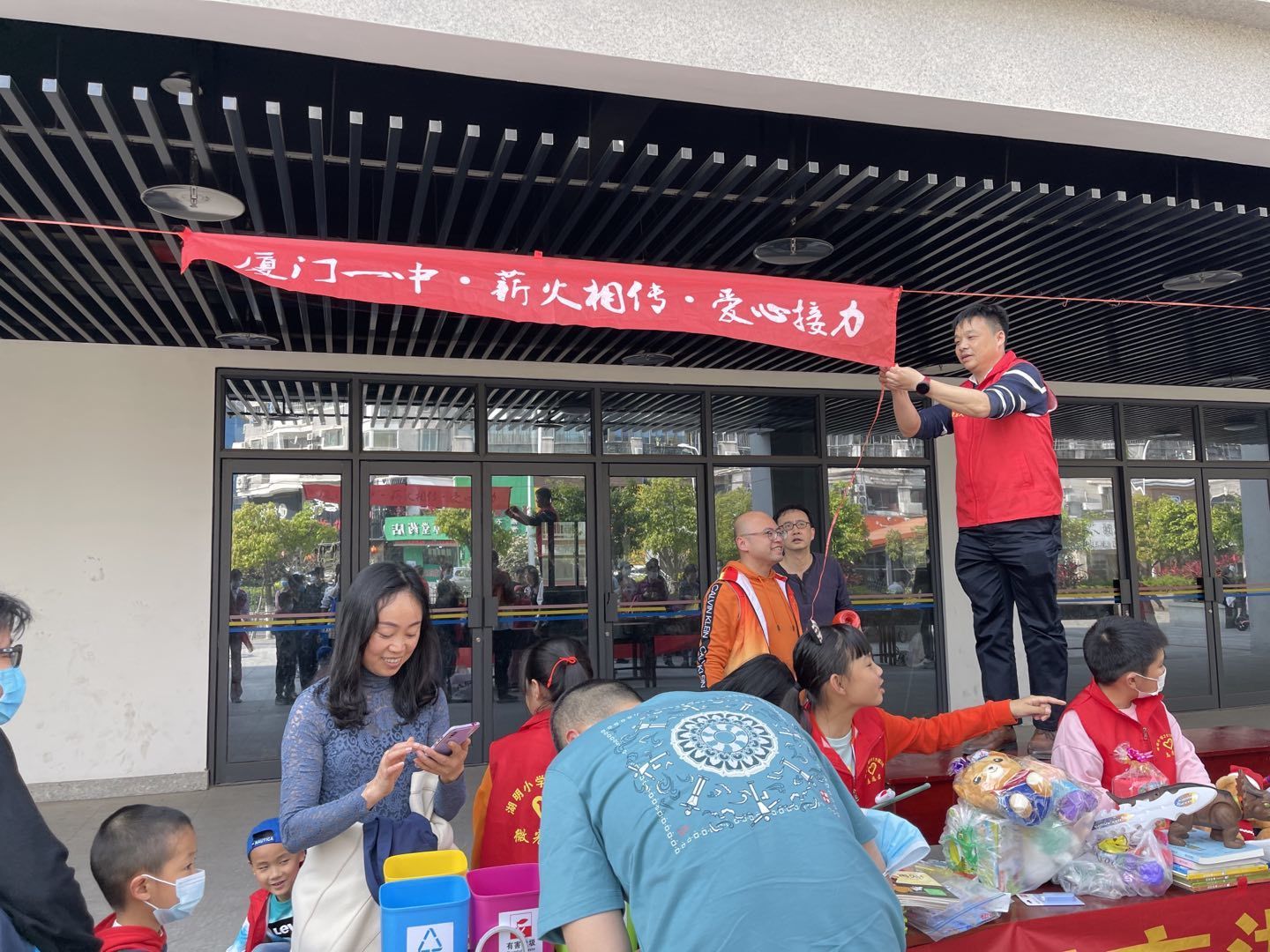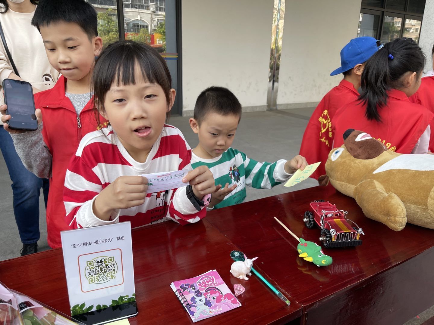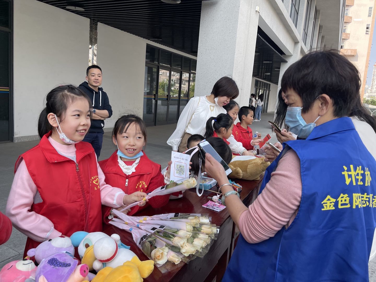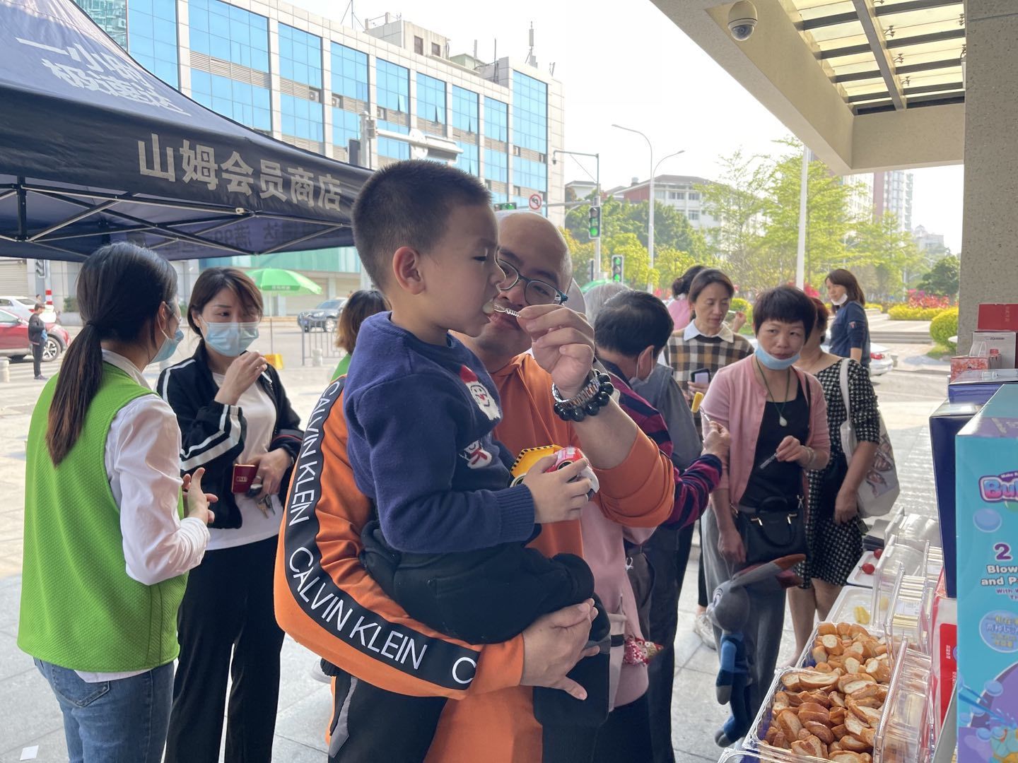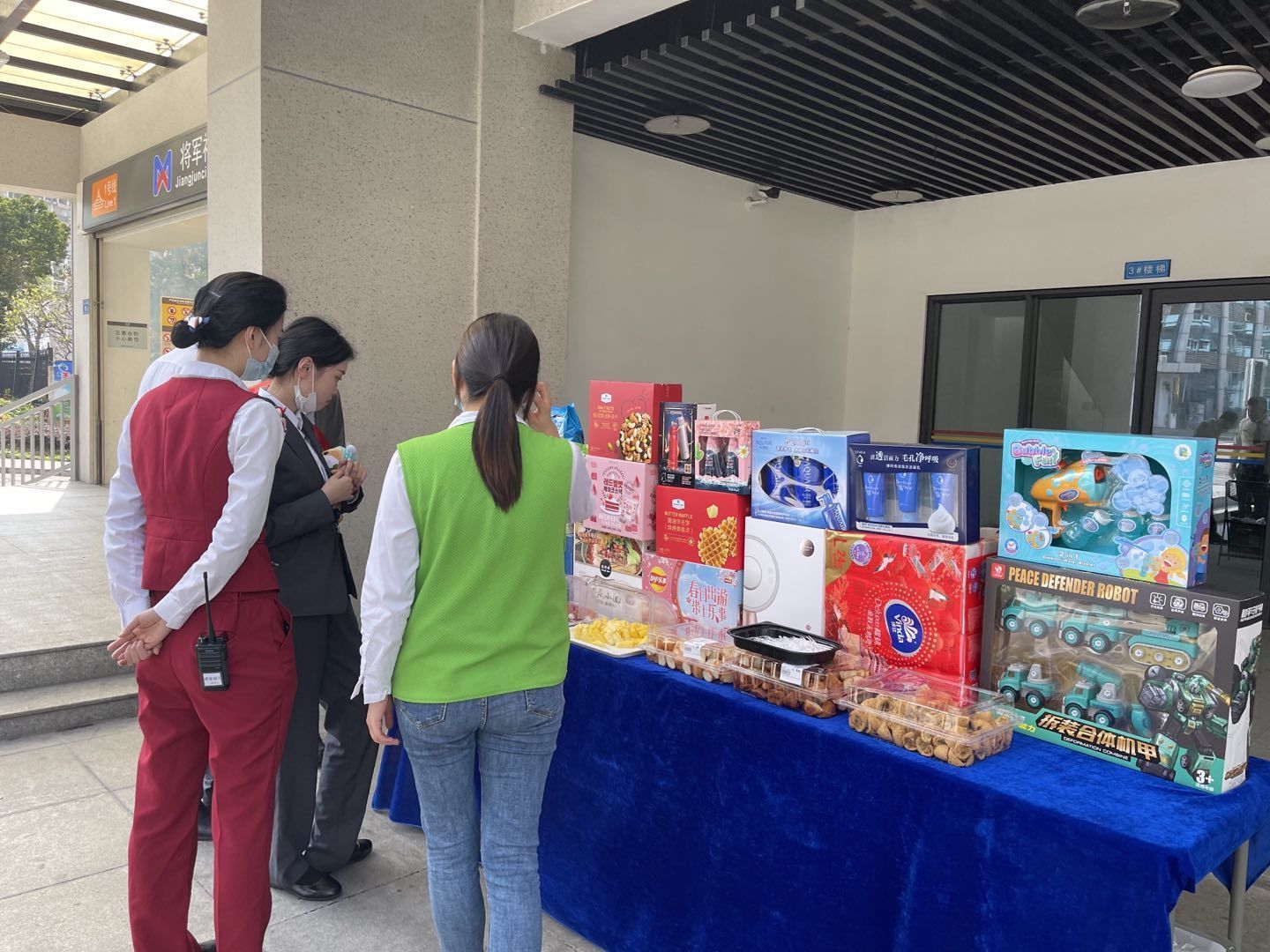 活动当中,现场居民、社区工作者、志愿者、派出所等都参与义卖活动当中,挑选出自己喜欢的的物品,为公益助力。