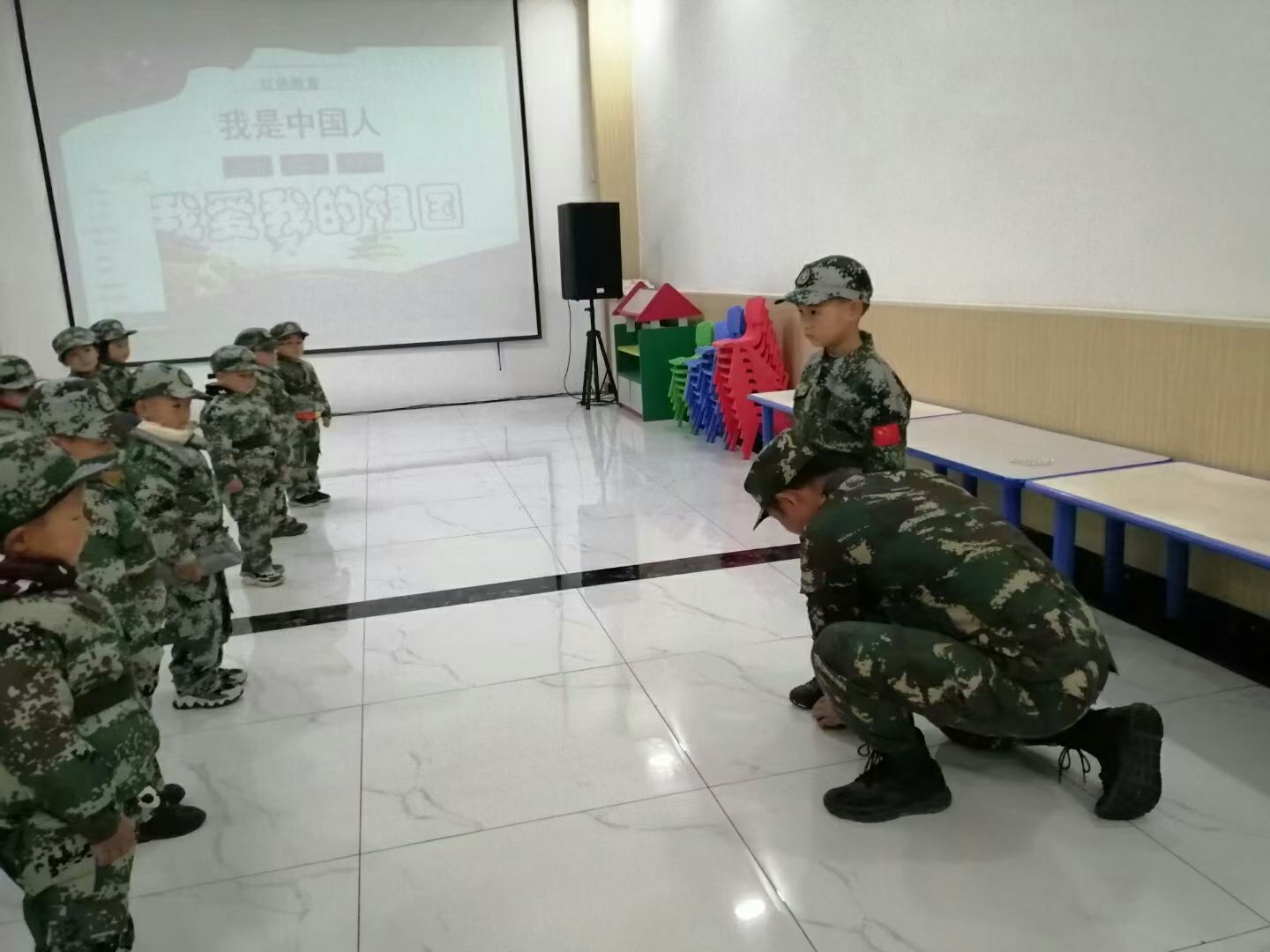 教官在对孩子们进行爱国主义教育,你看孩子们一个个听得那么认真。