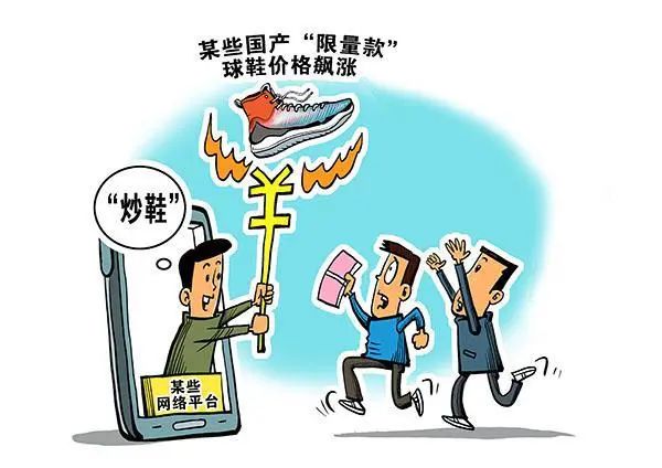 所谓“炒鞋”,简单来说就是把鞋买回来不穿,等到价格上涨时再卖出。一些产量少的爆款运动鞋,一转手就能卖高价。知名国产品牌的限量款球鞋在二手市场上存在一定溢价并不新鲜。然而,这一波价格上涨明显超出溢价范畴,远离价值规律。一件商品短短几天涨价数十倍,显然不是市场运行的正常现象。