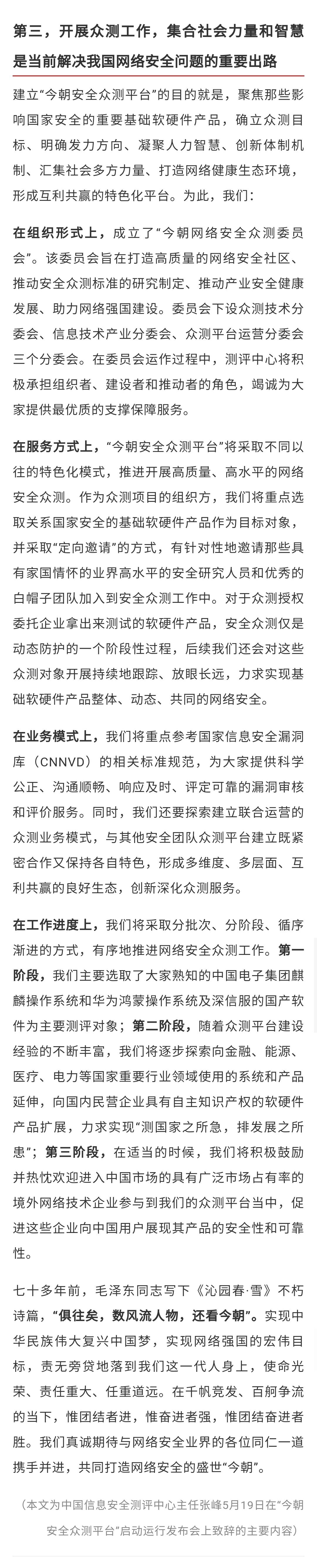 中国信息安全测评中心主任张峰:“今朝安全众测平台”启动 提供优质众测服务