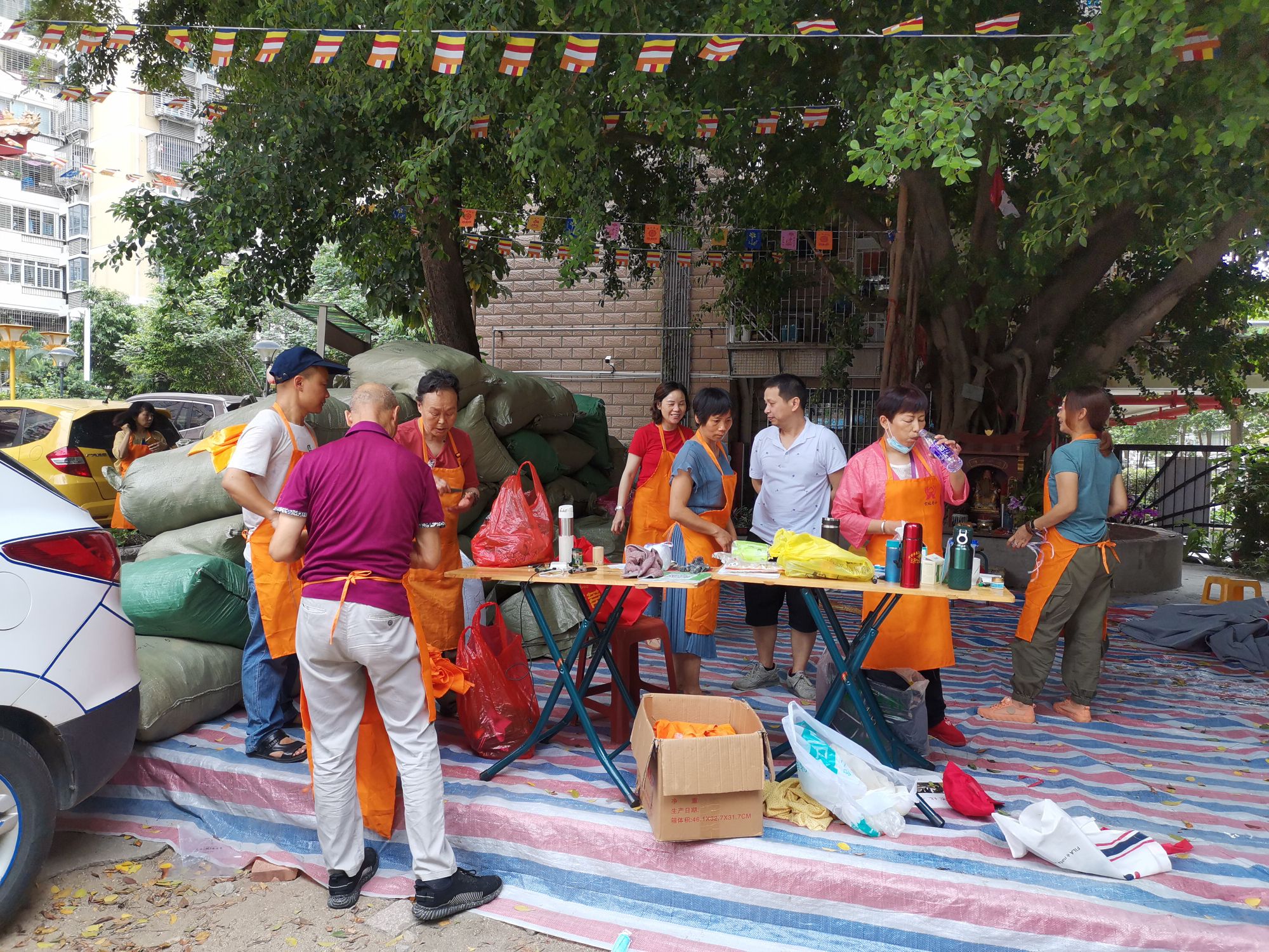 挑选衣服捐赠