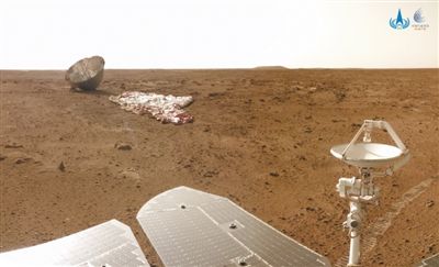 距离火星表面还有1.5千米时,一路保护着我们、像龟甲一样的背罩连带着降落伞被抛掉。与此同时,主发动机打开,强大的反作用力使我们的速度逐渐降低,光学成像敏感器开始对下方进行成像。在距离火星表面还剩100米的时候,着陆平台悬浮在空中,对脚下的地表进行激光三维成像,选择最佳的着陆位置。位置确定后,着陆平台在主发动机的精妙控制下开始缓缓下降。终于,随着一团尘埃被气流溅起,着陆平台的4只腿稳稳落在了火星乌托邦平原。火星终于迎来了它的第一位中国客人。