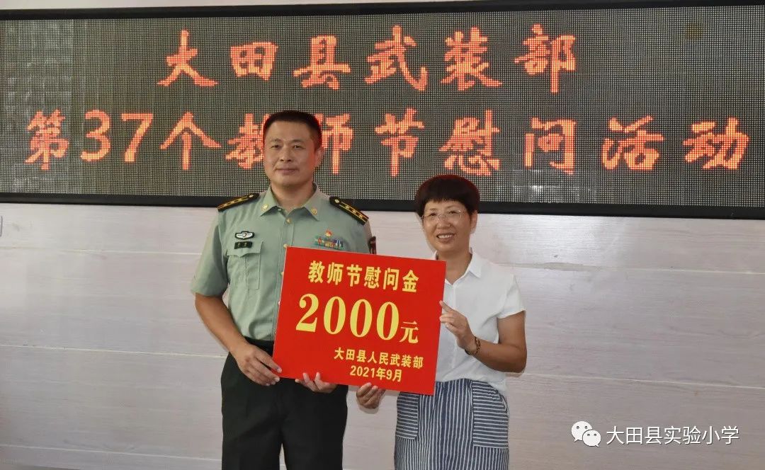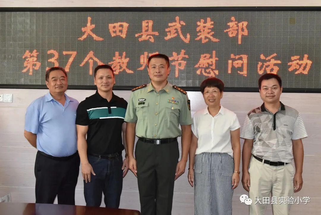 9月9日上午,在全国第37个教师节来临之际,县委常委、人武部部长蔡健来到大田实小,为全体教职员工送上节日的祝福和慰问,表达了部队官兵的深情厚谊。