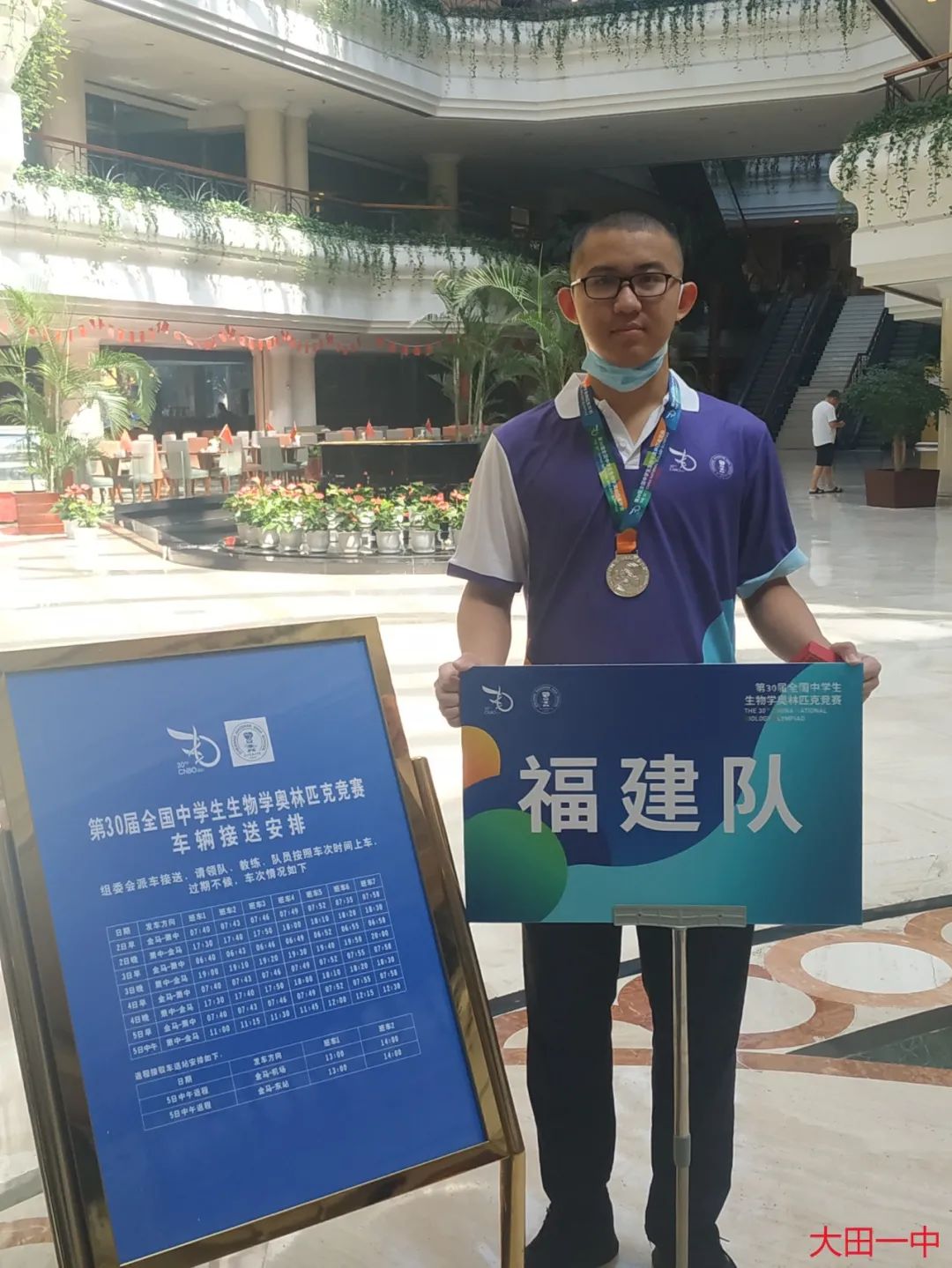 成功的路上充满艰辛。全国中学生生物学竞赛是五大学科竞赛之一,云集了全国名校、强校选手。为获得全国竞赛资格,温育康同学从省内初赛到全国联赛再到全国竞赛,不断闯关,超越自我,以福建省赛区第一名的成绩进入到由15名同学组成的福建队,最终斩获银牌!作为县域中学的大田一中,能在高手如云的全国生物竞赛场上占一席之地,实属难得!