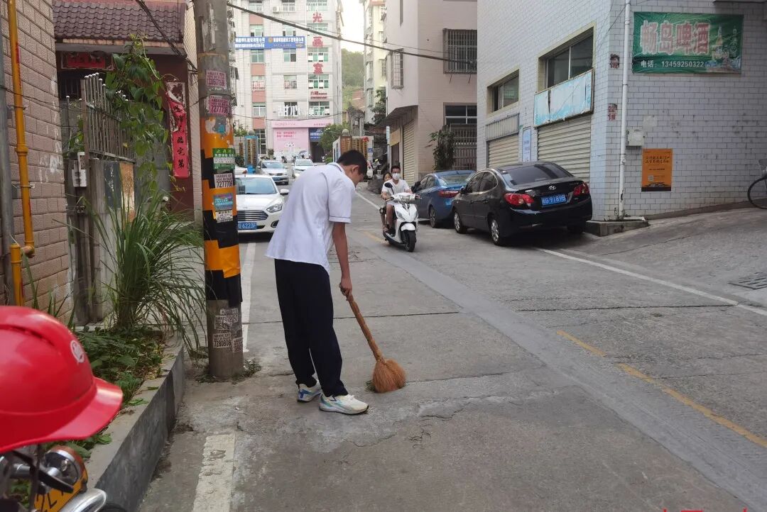 国庆期间,同学们走进社区,从自身实际出发,热心公益、奉献社会,体会劳动的光荣,锻炼综合技能,铸就美好未来。