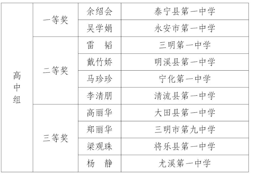 按照《三明市教育局关于组织中小学思想政治课示范课评选活动的通知》(明教思〔2021〕129号)要求,思想政治课示范课评选活动共收到作品38件(其中小学组12件,初中组14件,高中组12件),经组织专家网络评审,评出一等奖6名、二等奖12名、三等奖12名。现将2021年三明市中小学思想政治课示范课评选活动结果予以公布(见附件)。
