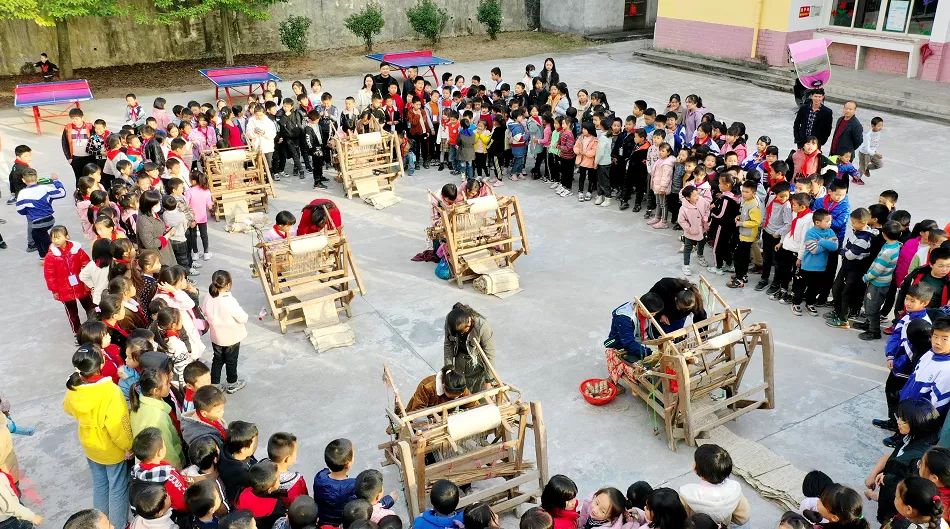 11月9日,在高岚乡中心学校,来自泗背村的麻农向孩子们教授手工织夏布。我县是久负盛名的“中国夏布之乡”, 麻纺工艺具有2600多年的历史,形成了集种植、生产、销售为一体的麻纺产业链。为传承这一国家级非物质文化遗产,当地常态化举行“非遗进校园”、麻博会、刺绣大赛等活动。