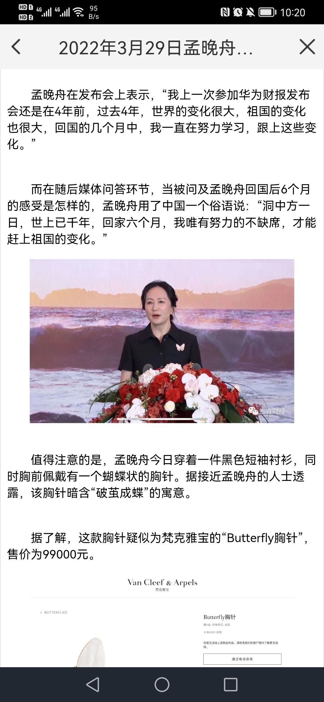 鸿蒙蝴蝶云之孟晚舟佩戴的蝴蝶