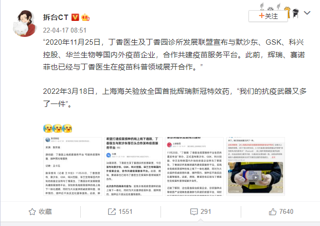 来自媒体的报道证实的基本事实是:美国辉瑞公司与“丁香医生”,人家是亲密的合作伙伴!