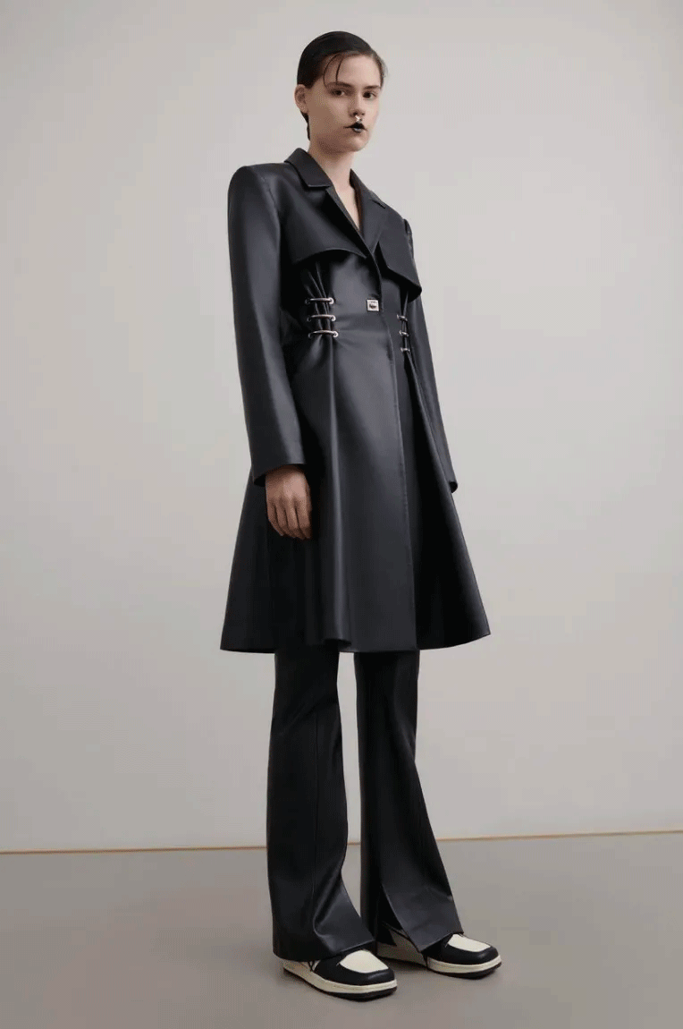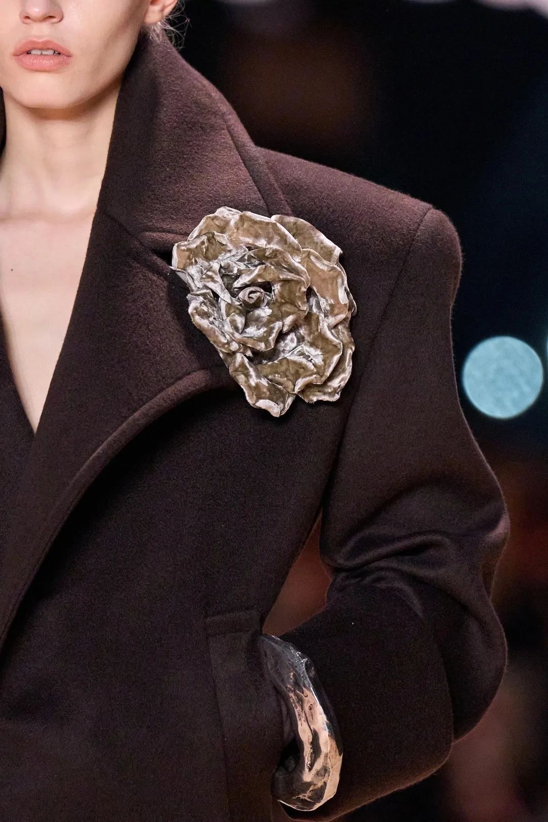 而在前不久发布的品牌2022秋冬新品当中,各种金属环、金属链融入到西装、皮衣等单品设计之中,虽然低调但非常巧妙,在整体look当中也是点睛之笔。