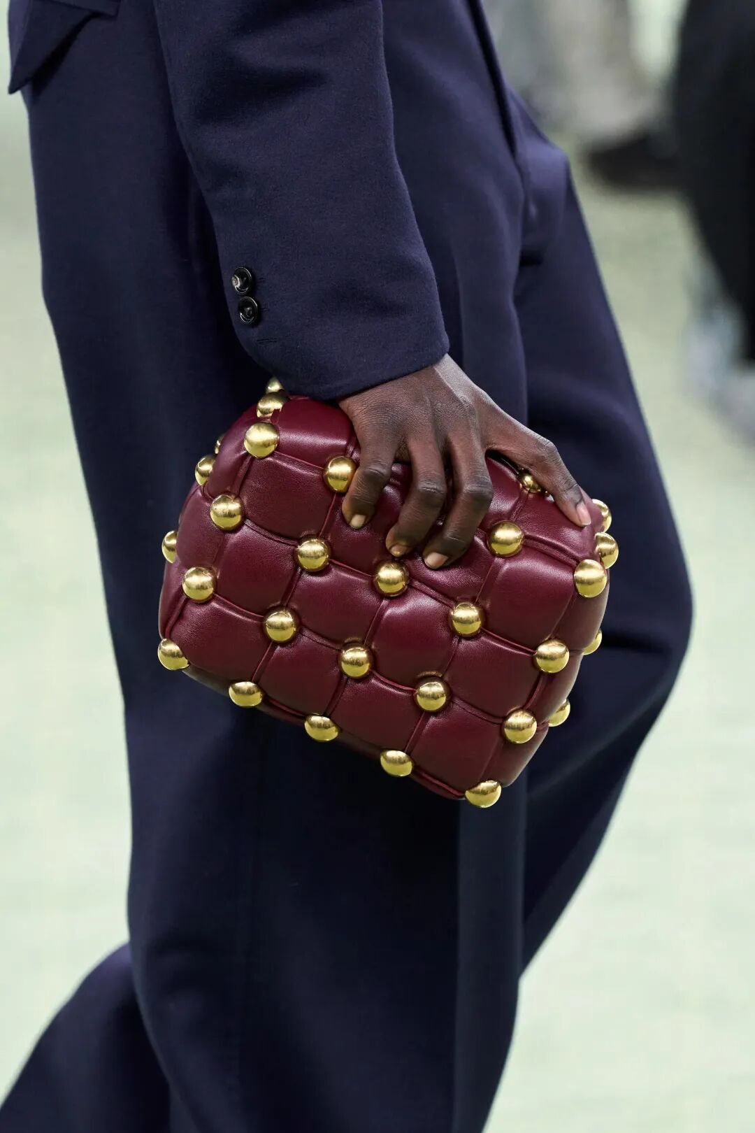 而全新出发后的BV在2022秋冬系列当中,也出现了几款更具个性的金属包款,将金属手柄直接当作包带,或者是用金属珠子融入到编织格纹包身之中,目测又会成为一众博主的出街穿搭利器。
