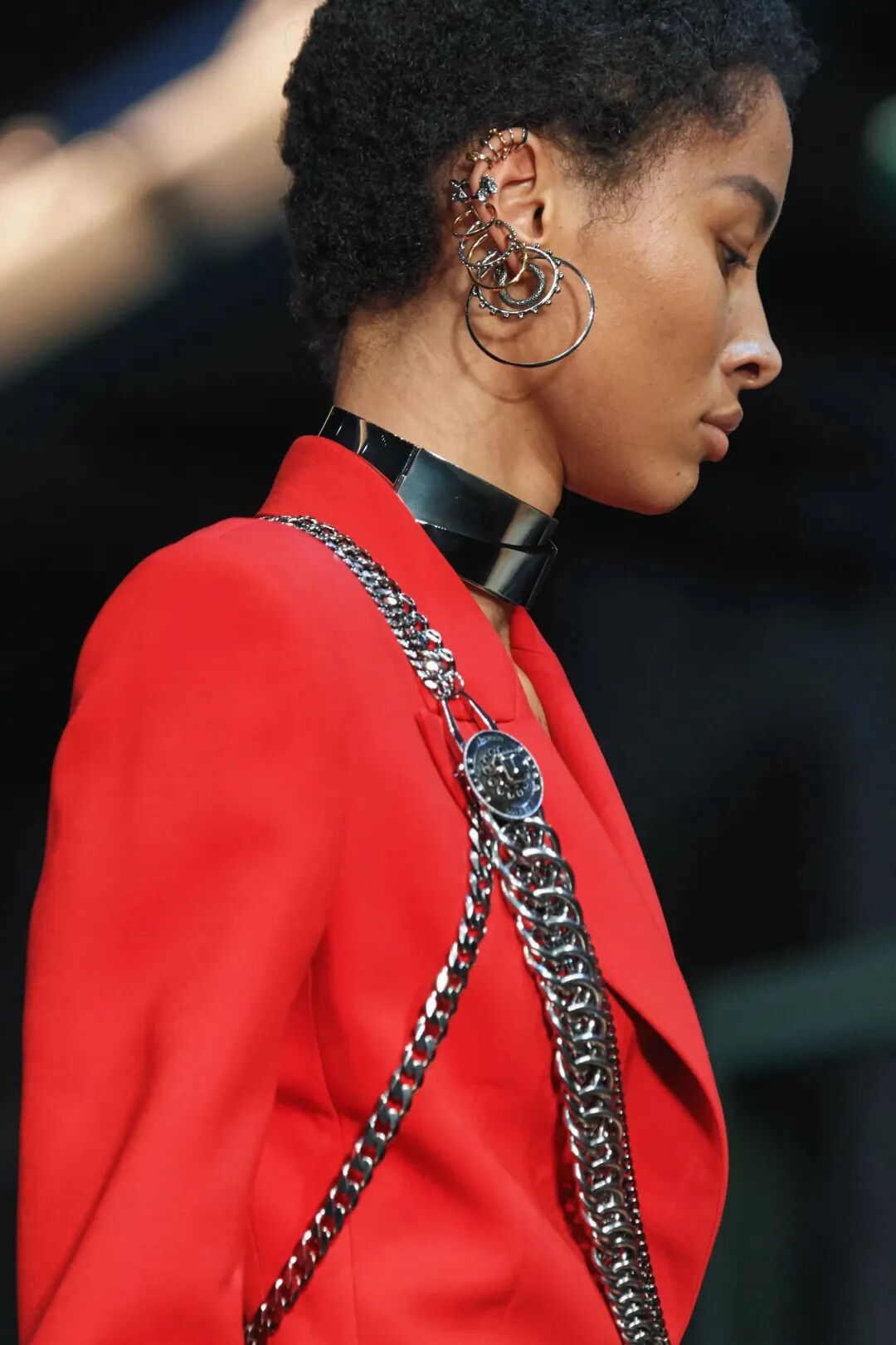除了单品形状多样性的增加,同时还有一个趋势就是“重量级”金属越来越多,也就是说大家越来越爱戴大size的金属配饰了。