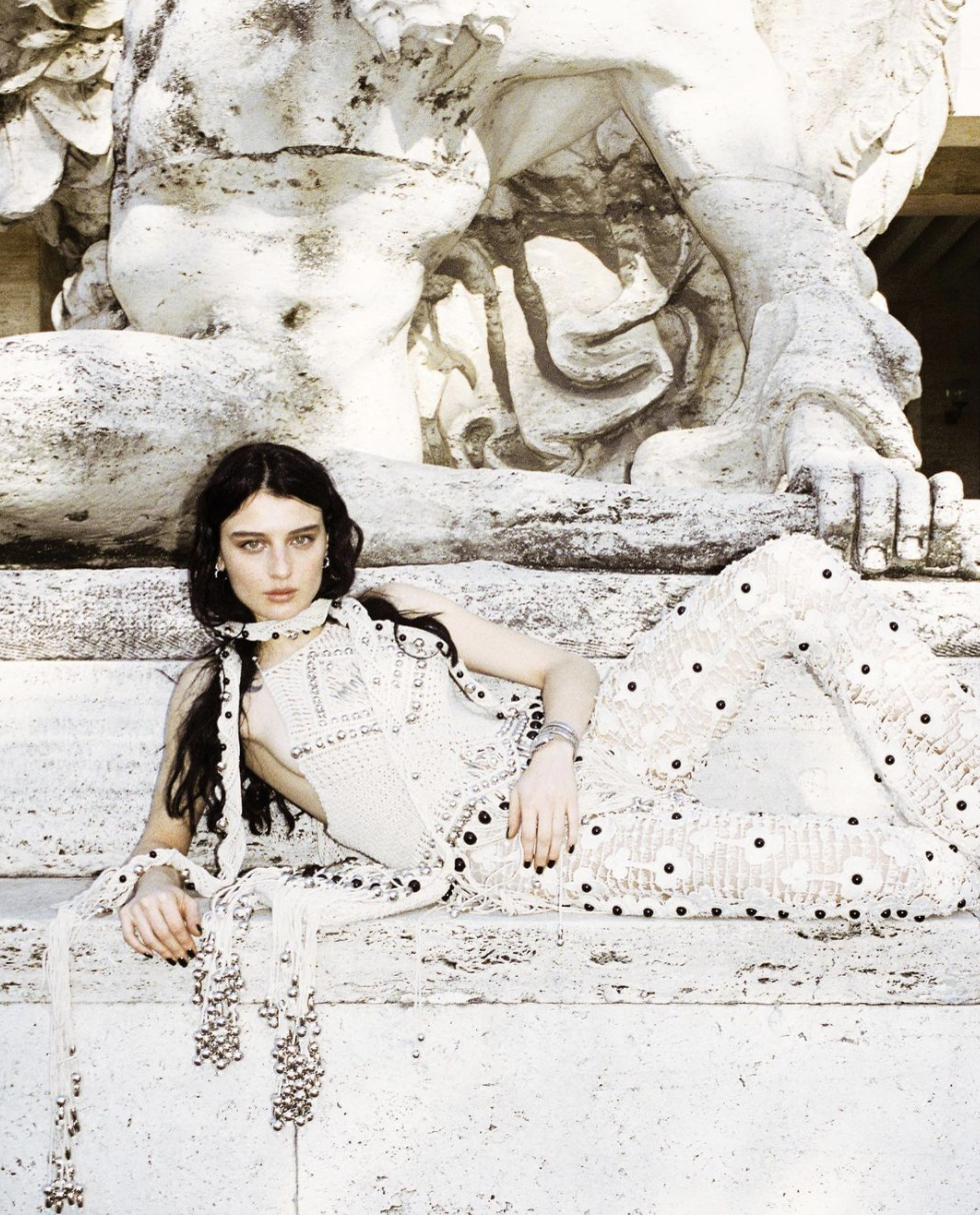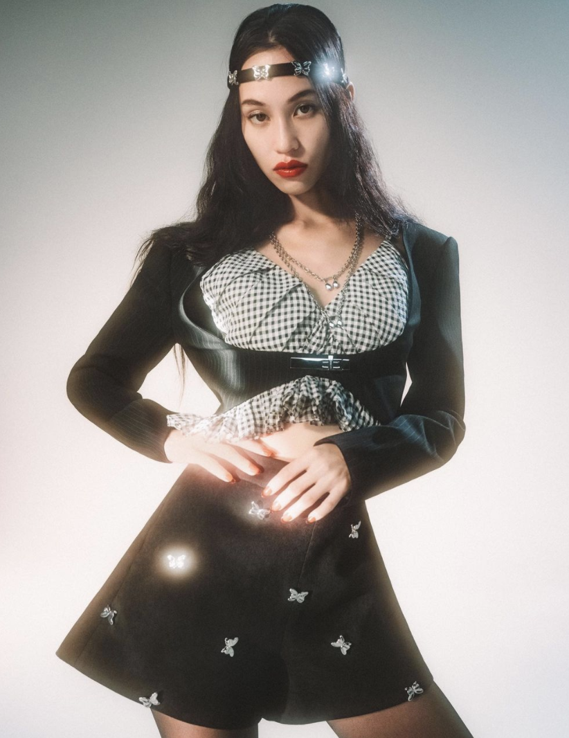 中国设计师品牌CALVIN LUO的设计理念当中,金属元素也是一大重点,尤其是今年春夏新品当中极具存在感的金属蝴蝶坠饰,水原希子率性演绎。