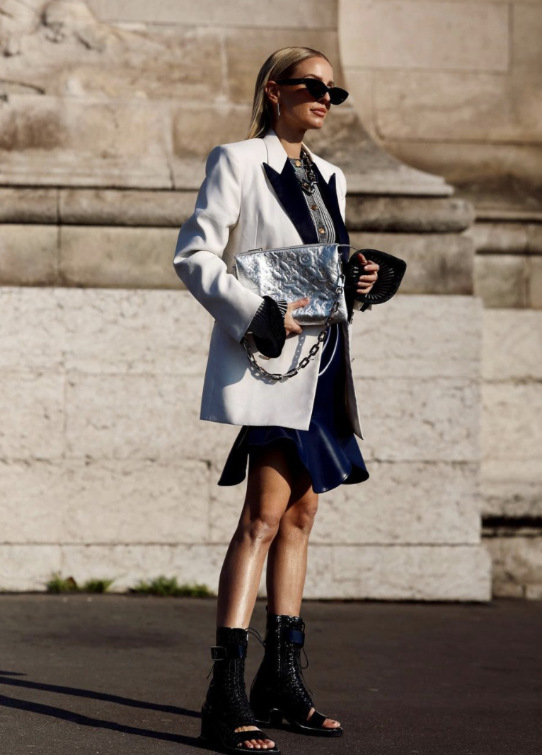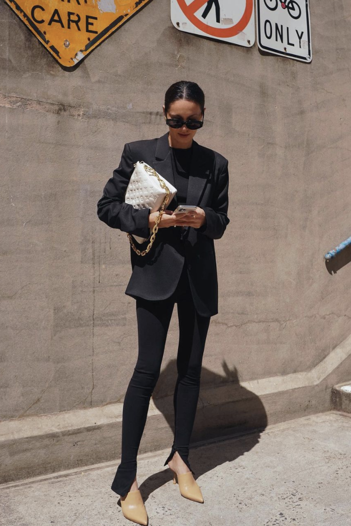 澳洲时尚博主Petra Mackova同样也很热衷于此类包款,且给大家演绎了春夏之际各种链条包款的各类出街方式。