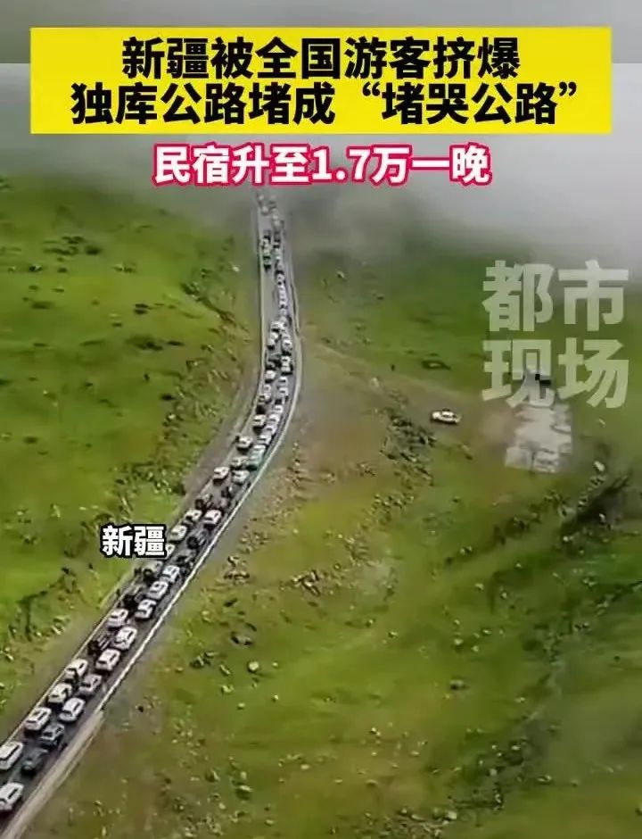 新疆被挤爆了,,毕竟当地硬件和旅游服务并没有开发完备,足以应对。