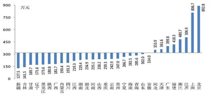 不妨仔细看看下面这张表,可以发现,北京、上海、江苏、浙江、福建、广东等经济发达地区的居民资产水平相当高。