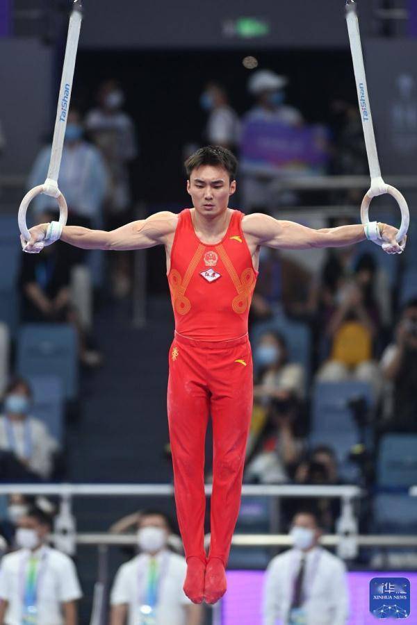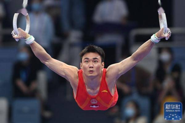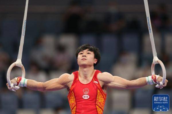 ↑杨家兴在吊环比赛中。新华社记者 许雅楠 摄