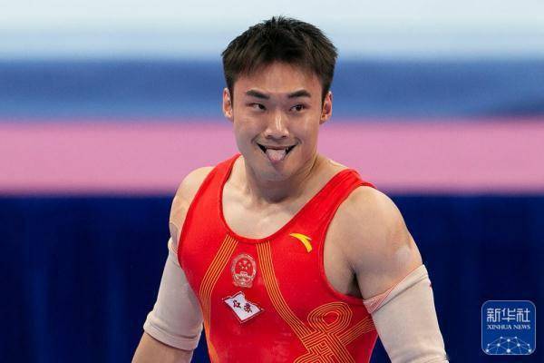 ↑张博恒在双杠比赛后。新华社记者 许雅楠 摄