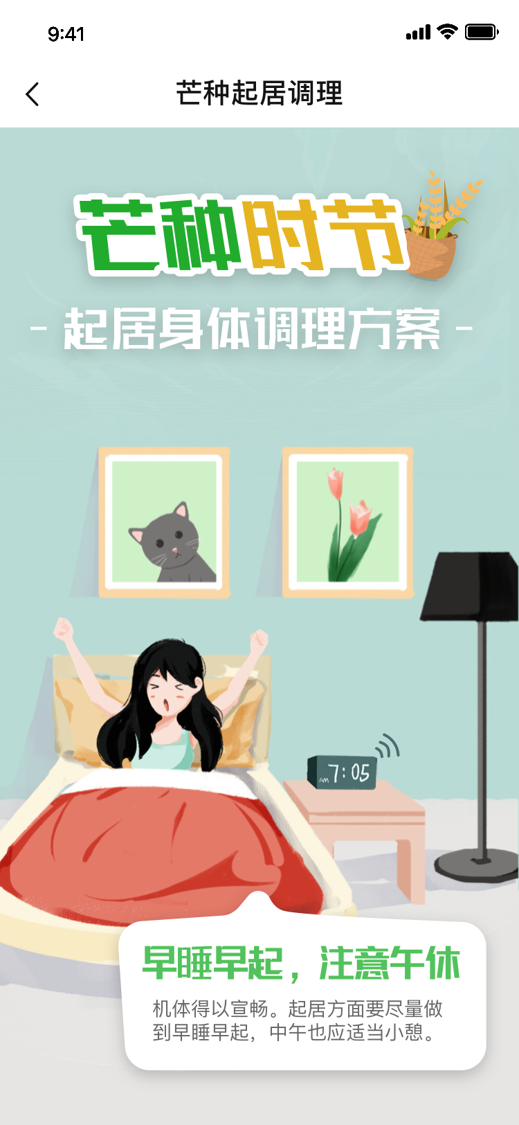 根据24节气变化,提供高质量起居身体调理方案,吻合自然四季变化,养成完美作息规律。