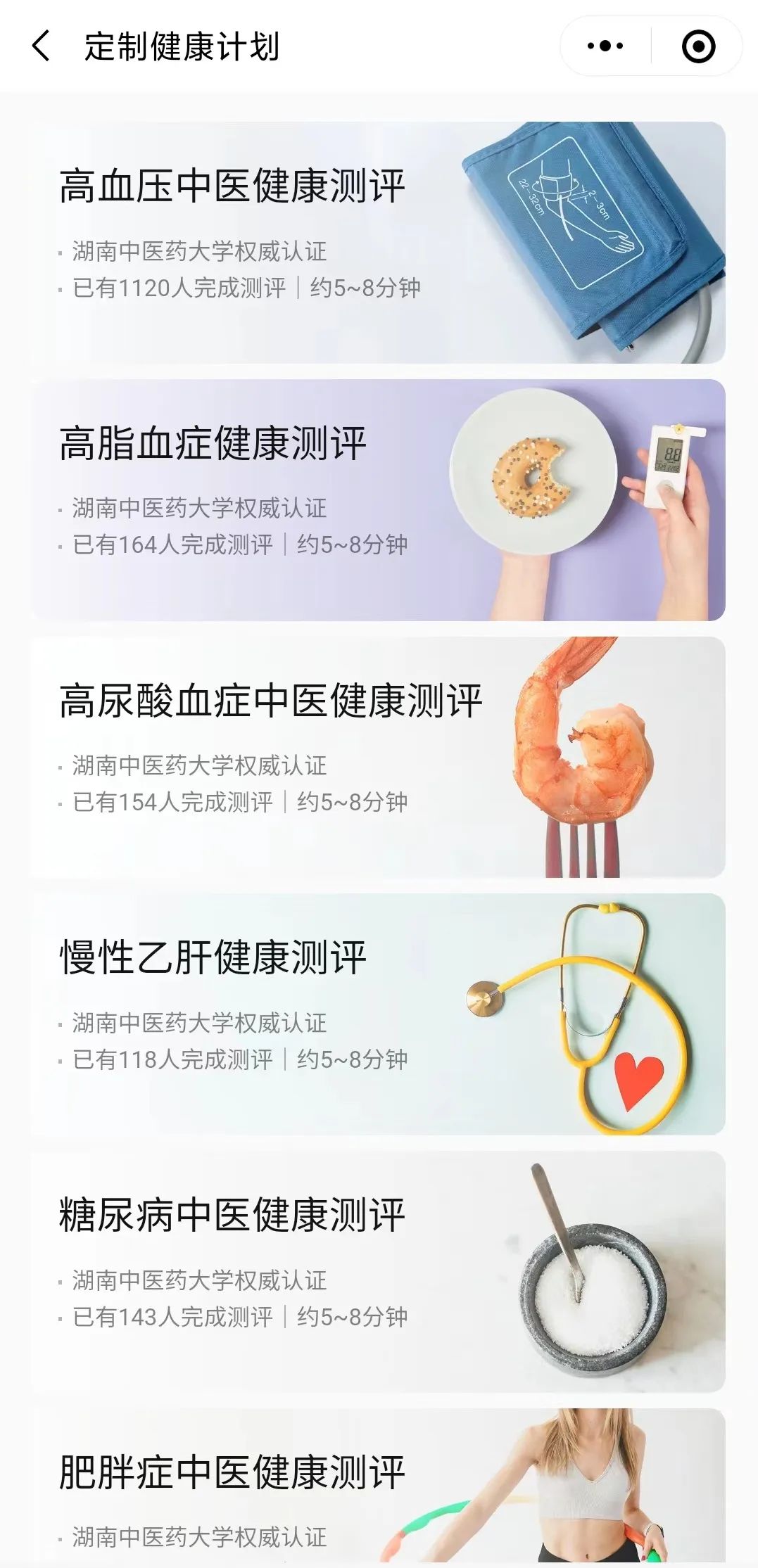 慢病定制计划,权威测评,生成专属计划,针对7大常见慢性疾病:
