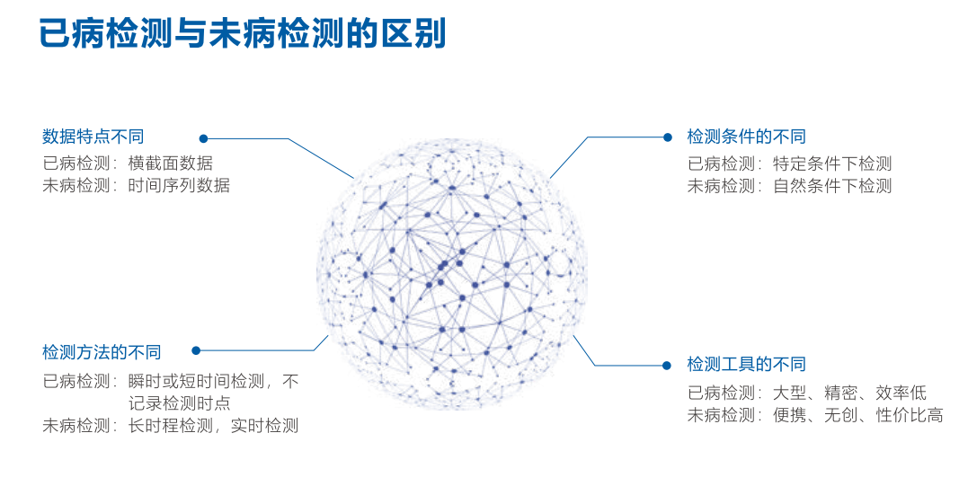 未病测评是以小型、便携、无创的可穿戴设备为检测工具,对人体生物信号进行自然状态下长时程、实时监测。通过时间序列数据与智能穿戴设备,对人体的自组织能力、自适应能力和自修复能力进行客观有效评估,对未病进行客观辨识,有望在疾病发生或加重之前进行早期预警。