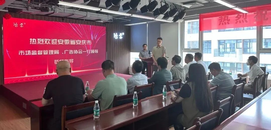 安庆市市场监督管理局二级调研员郑学平、广告科科长童潇宁、安庆市广告行业协会会长王和祥及安庆市广告企业代表到
