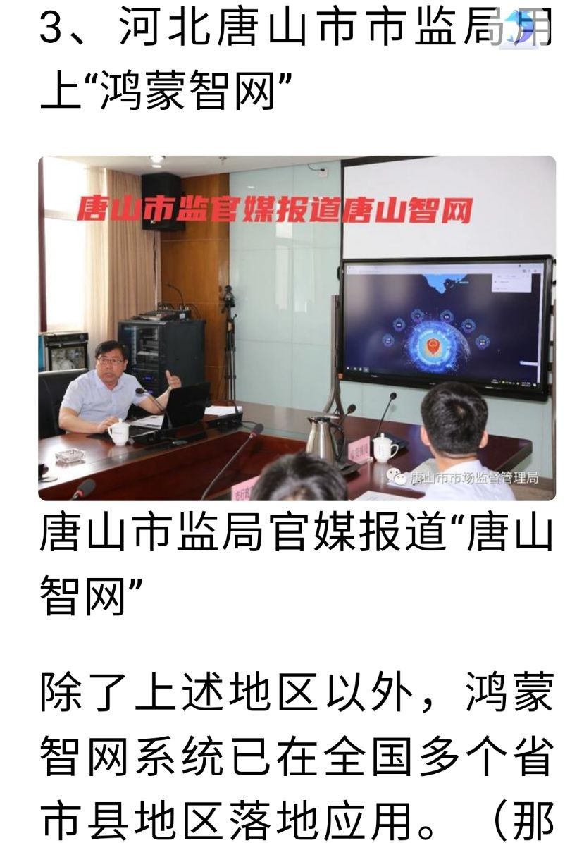 鸿蒙云是按照中国行政区划和行业划分方式创建的类似“虚拟中国”的云平台,拥有安全可控的自主知识产权,采用分布式部署基础设施,可灵活服务于各种类型的客户;系统是在国务院关于“互联网+监管”和智慧监管精神指导下,在总局试点创新监管模式基础上开发的全新智能监测系统,可以落实国家治理新理念,践行放、管、服相结合指导思想,采用云计算、大数据、人工智能、区块链多项新技术,为全国各级市场监督管理局提供一流的云平台技术监测手段,解决部分监管中的问题。王会长表示智网系统的强大功能真正实现了智慧监管,在实际应用过程中优势突出,可以进一步洽谈合作。