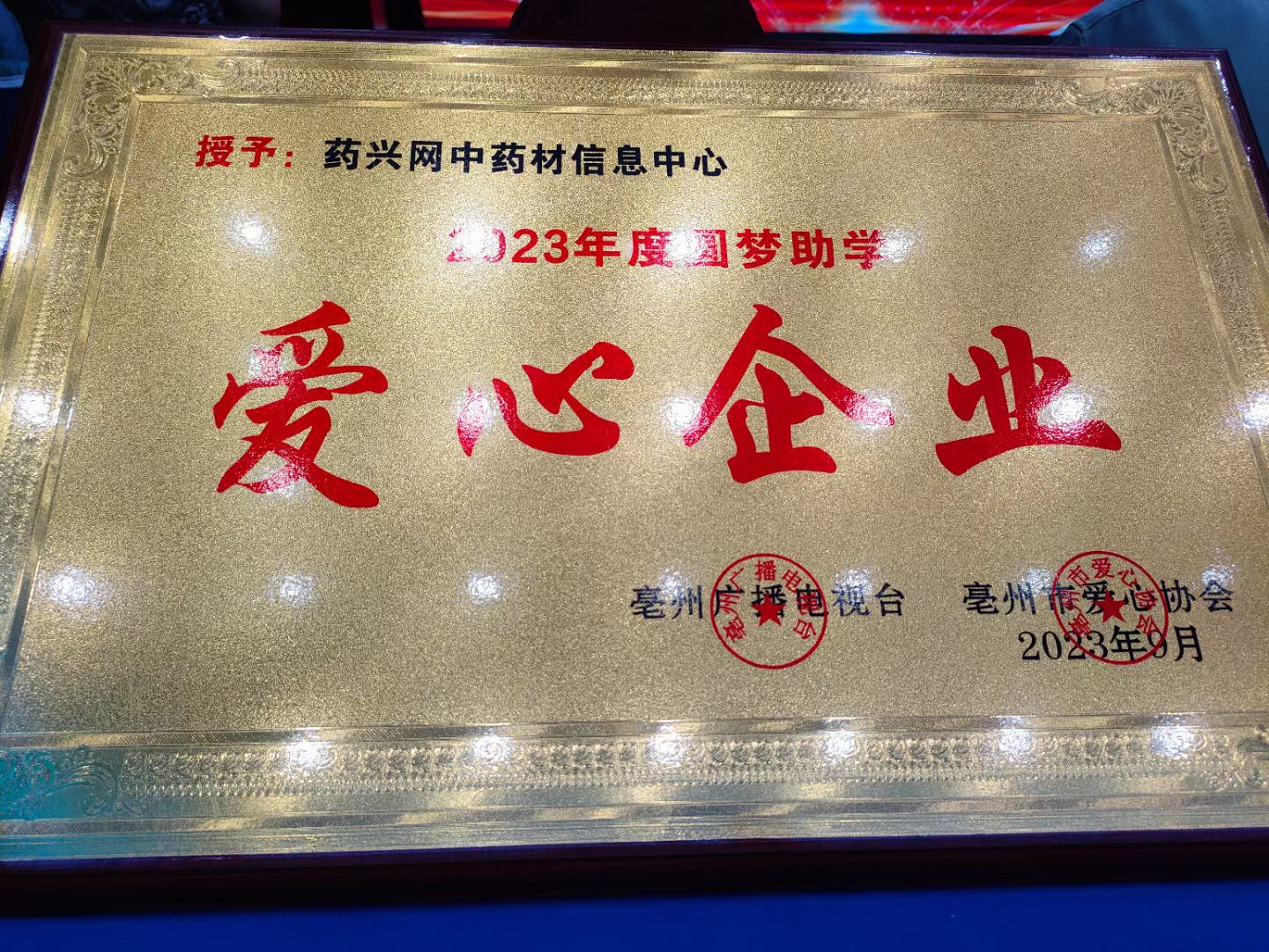 亳州市药兴网中药材信息公司作为爱心企业出席本次会议并受到表彰奖励。