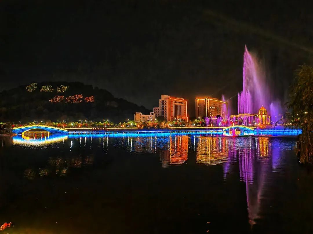 灯光与喷泉交织