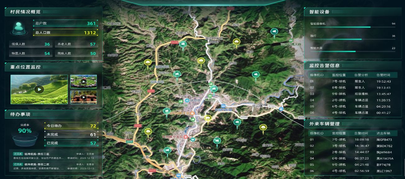 基于核心需求及技术支持,通过智能设备数据采集与云端大数据分析,最终实现智能的乡村管理、便捷的村民服务、可持续的村产业升级;