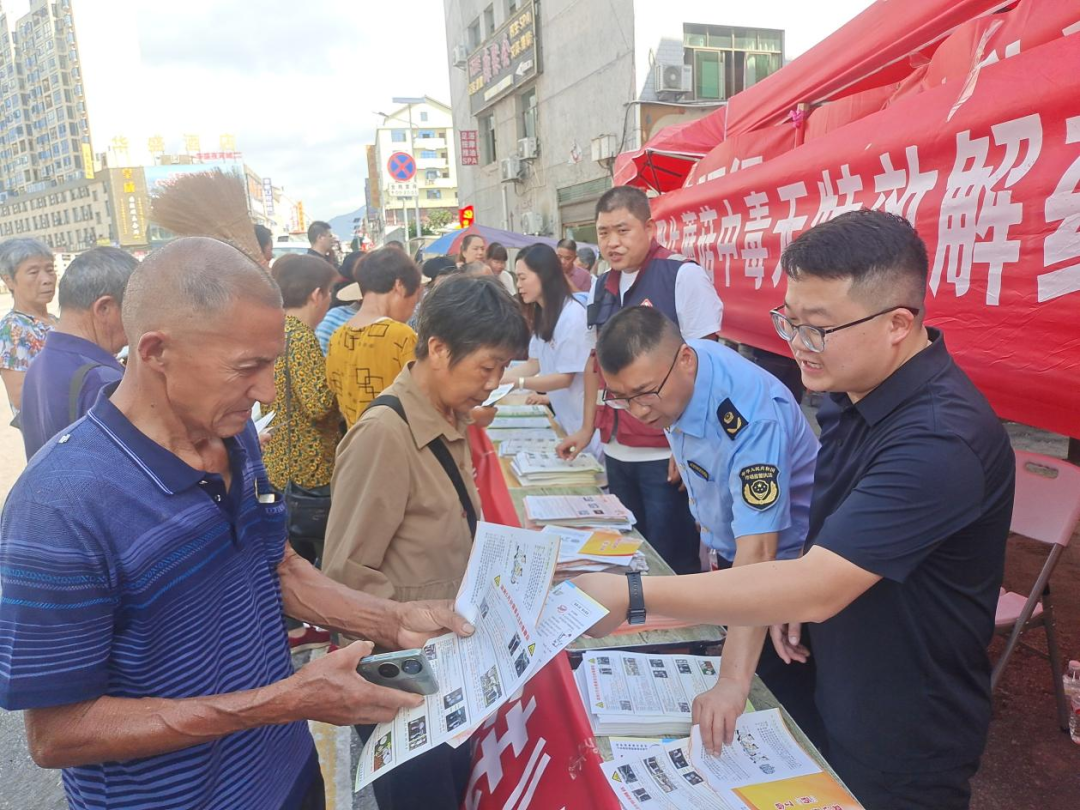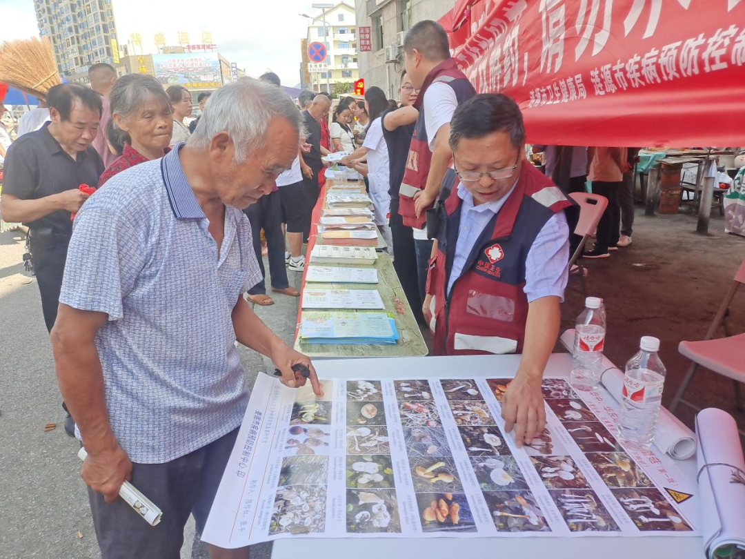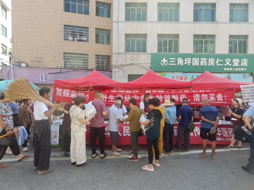 2024年7月4日上午,桥头河镇人民政府联合涟源市卫健局、涟源市疾控中心、桥头河市场监督管理所、桥头河中心卫生院在镇城区三角坪开展防止误食野生蘑菇中毒集中宣传活动。市卫健局副局长龙玉雄、周智勇,副镇长聂泉涛参加活动。