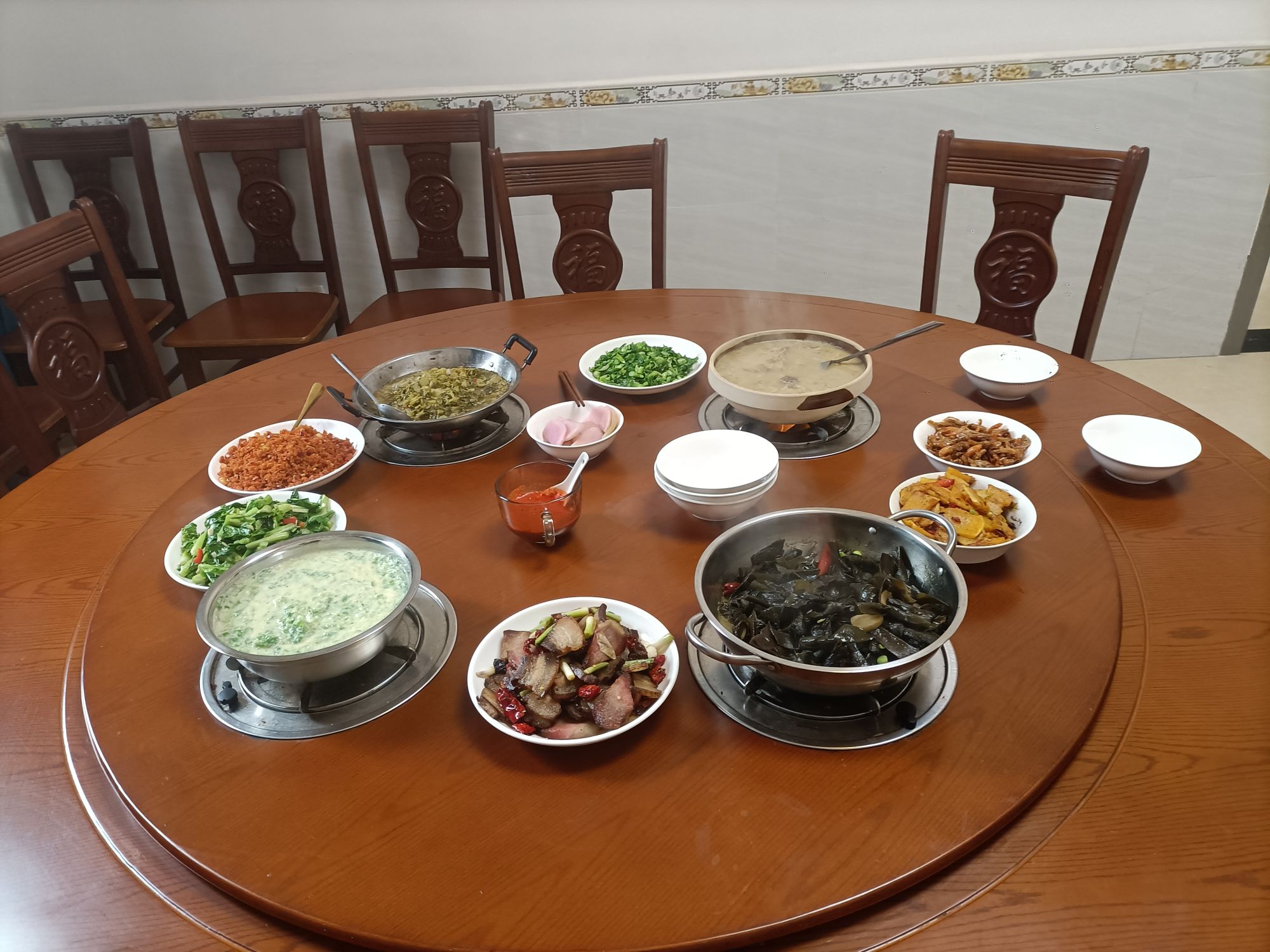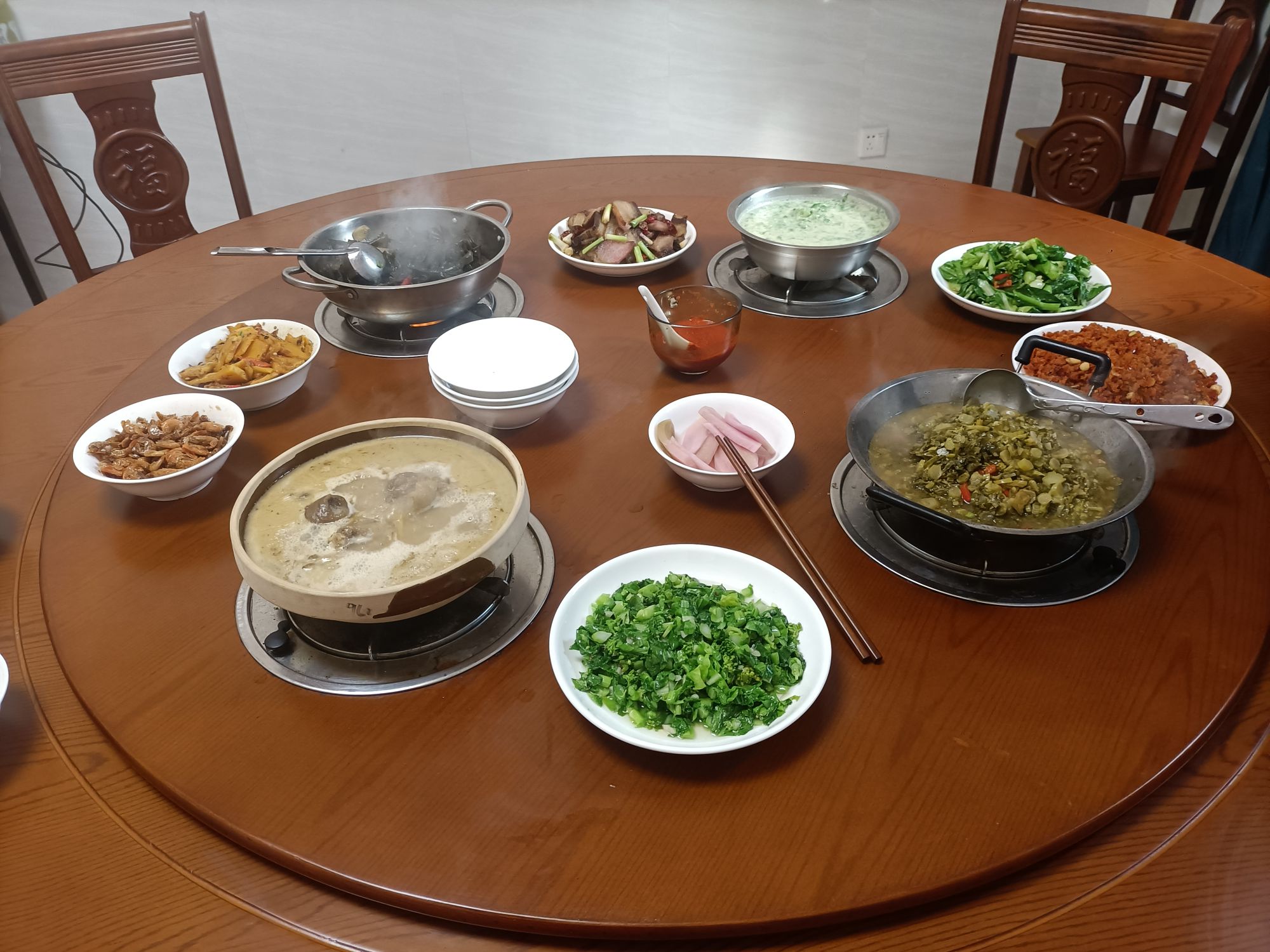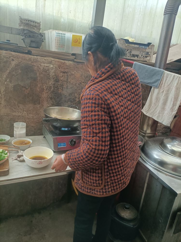 大姐清早来给兄弟做生,带的土鸡蛋、腊肉、桔片爽等礼物。